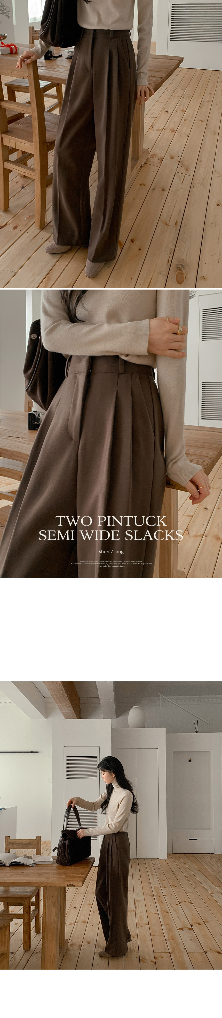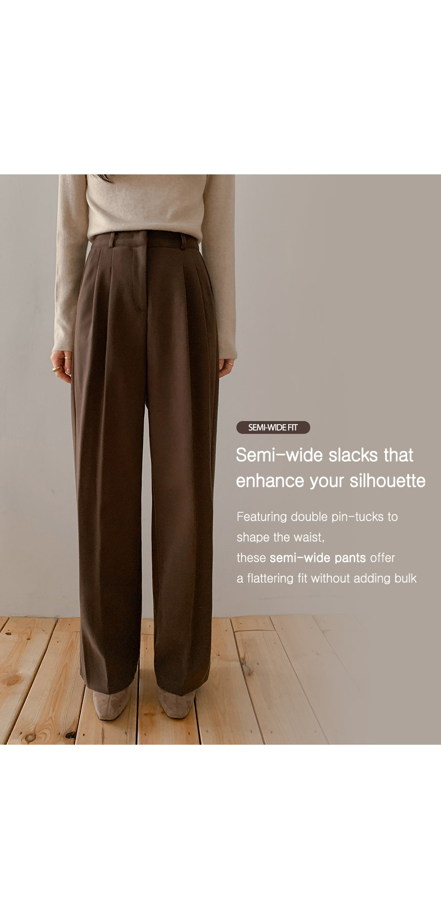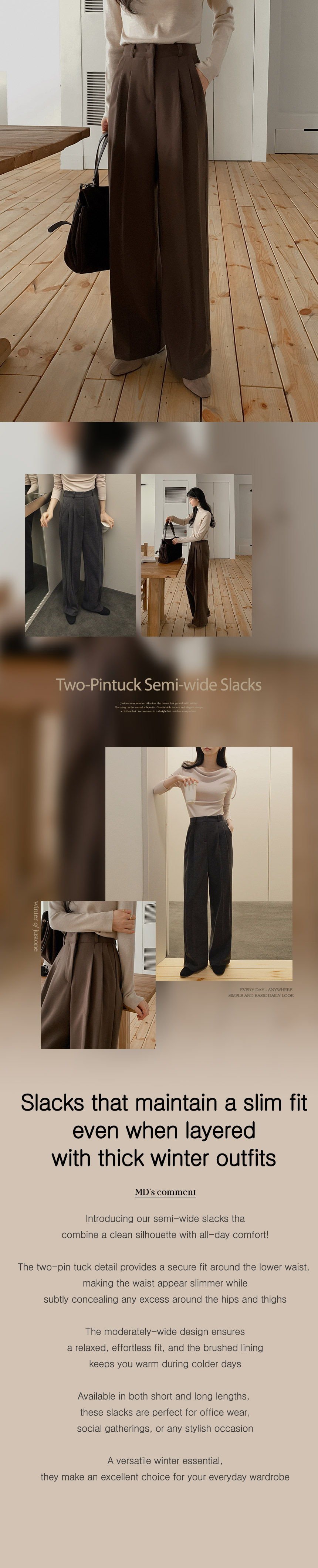 4DA32294NN_Two-pintuck Fleece-lined Semi-wide Slacks (Short/Long)