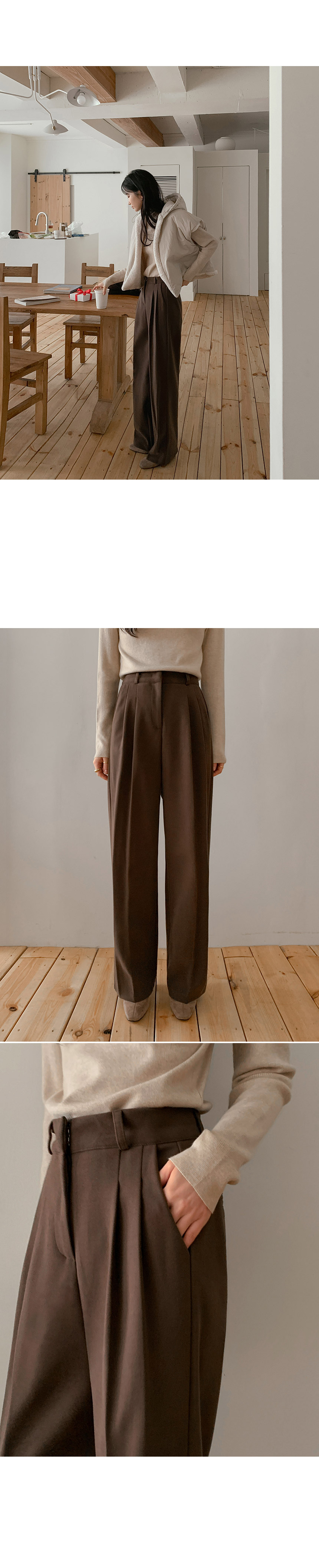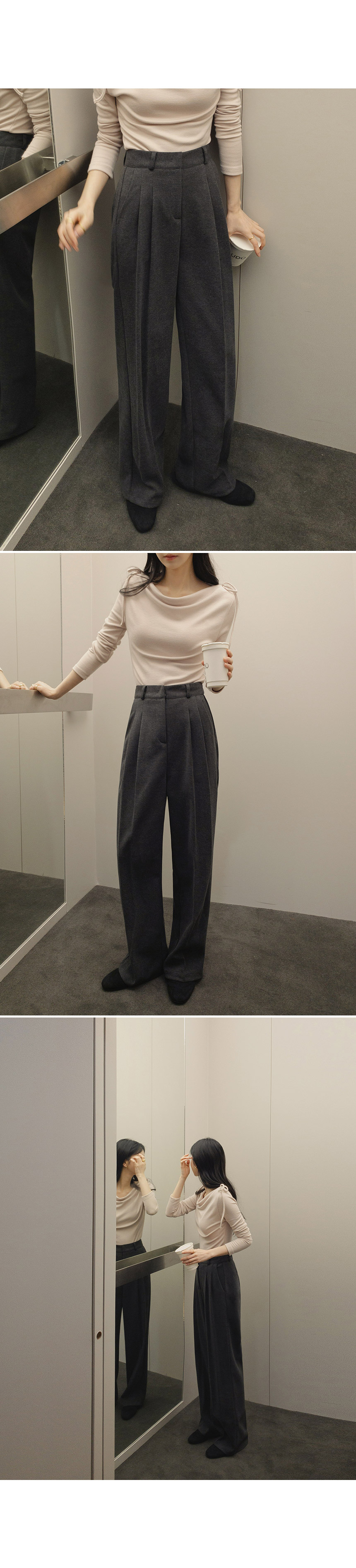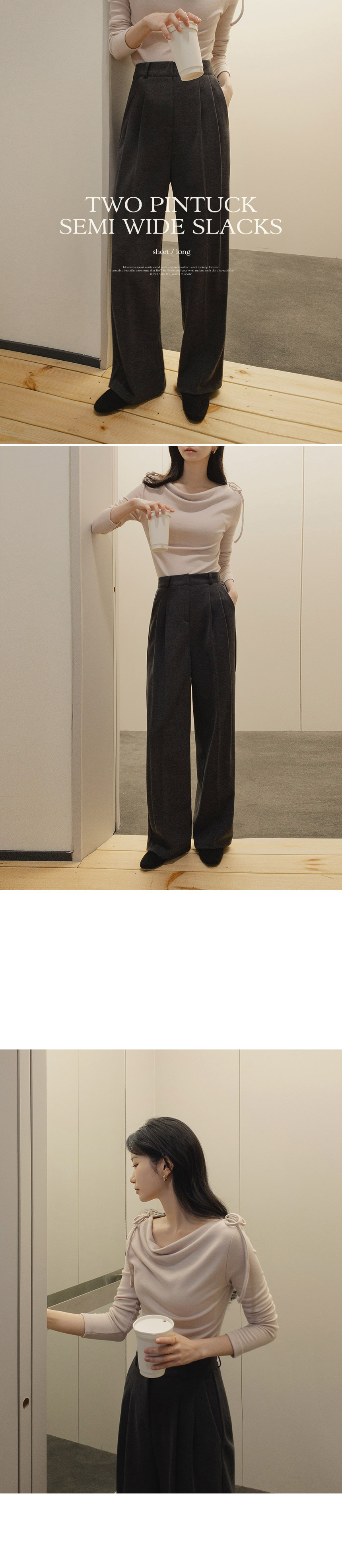 4DA32294NN_Two-pintuck Fleece-lined Semi-wide Slacks (Short/Long)