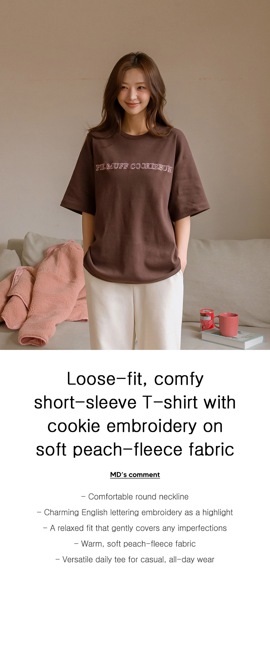 6DA32333HN_Cookie Embroidery Peach Fleece Short-sleeved Shirt