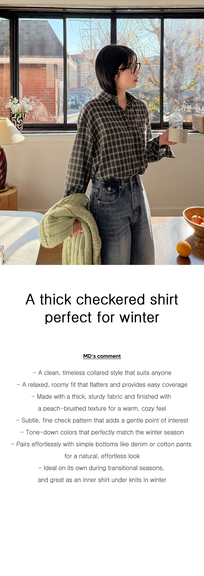 This shirt features a muted color palette and a vintage check pattern, giving it a seasonal vibe. It stands out on its own and layers effortlessly with other tops - definitely a piece you’ll reach for again and again~