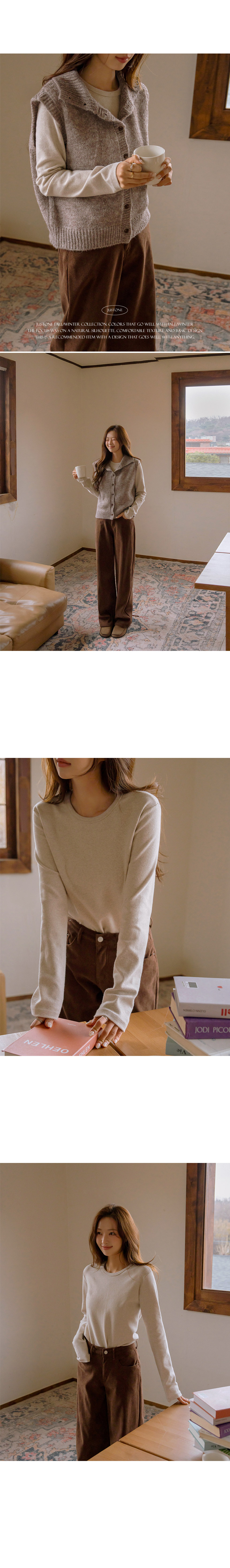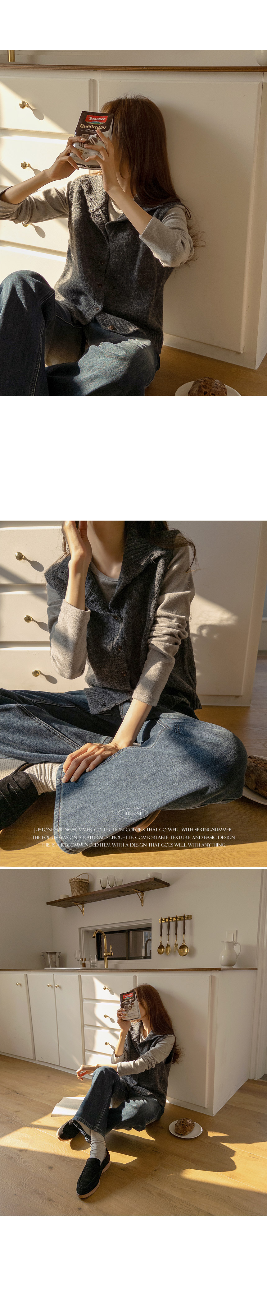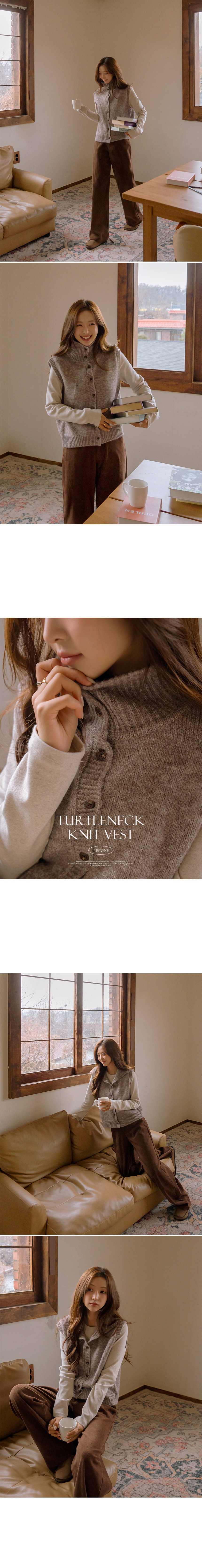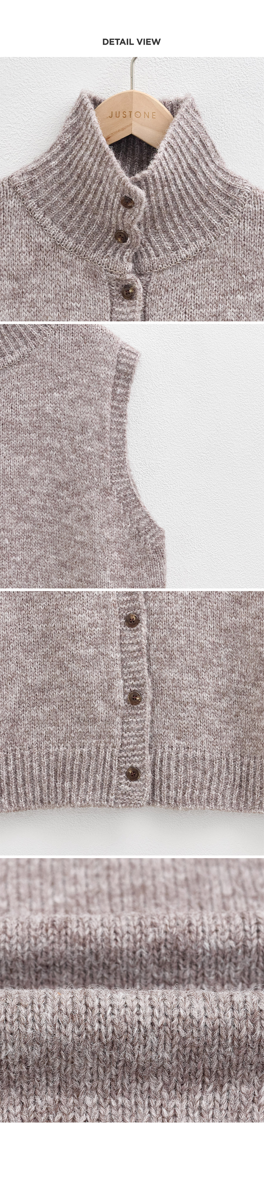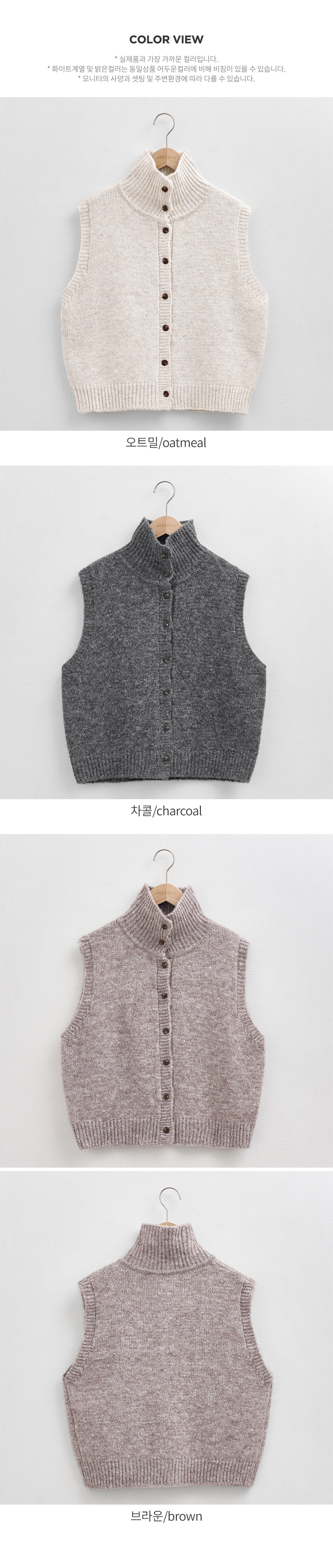 This knit vest can be buttoned up to create a turtleneck look. Its loose-fit design flatters the body shape, making it perfect for wearing over a basic T-shirt.
