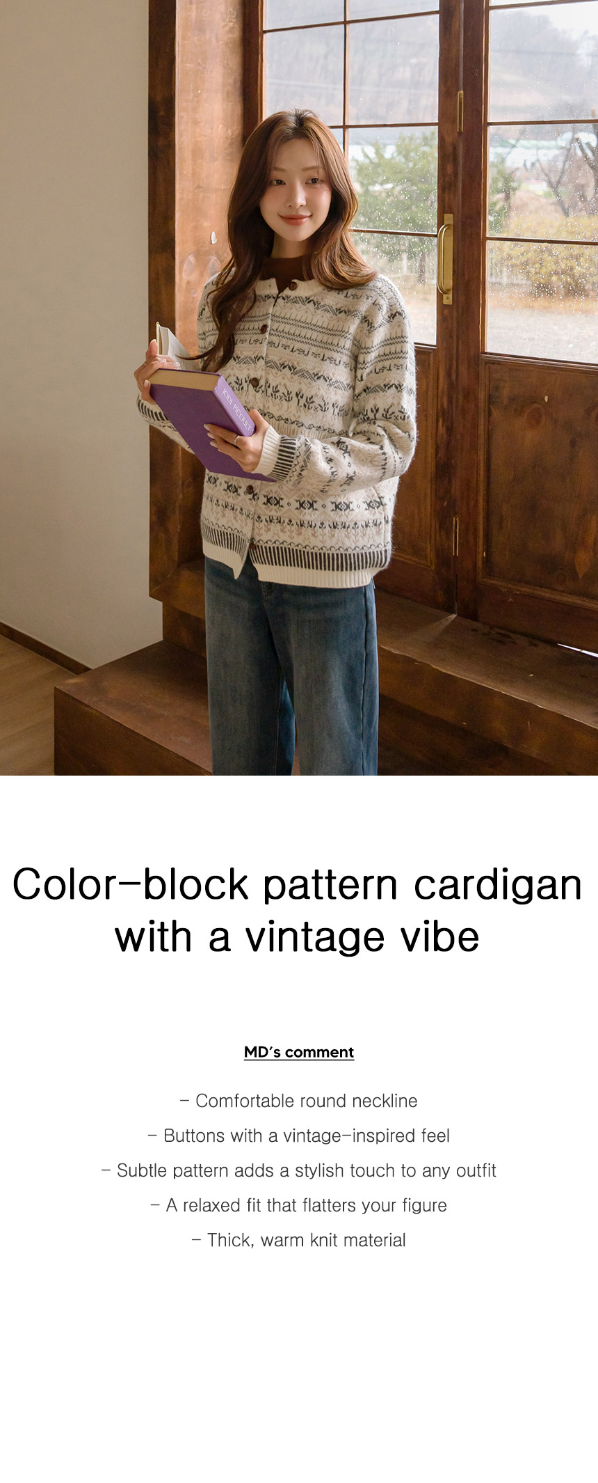 6DA32327CW_Renia Color Block Pattern Cardigan