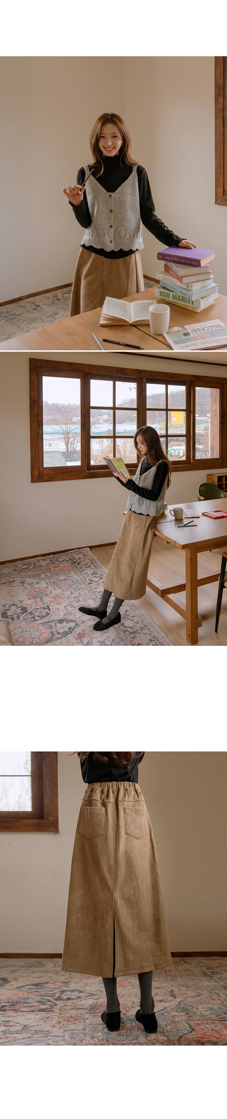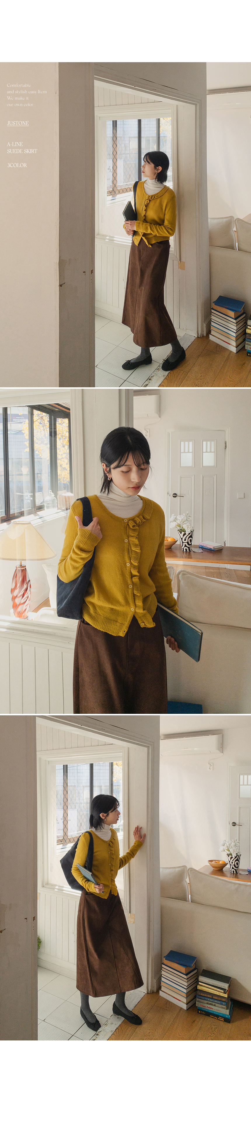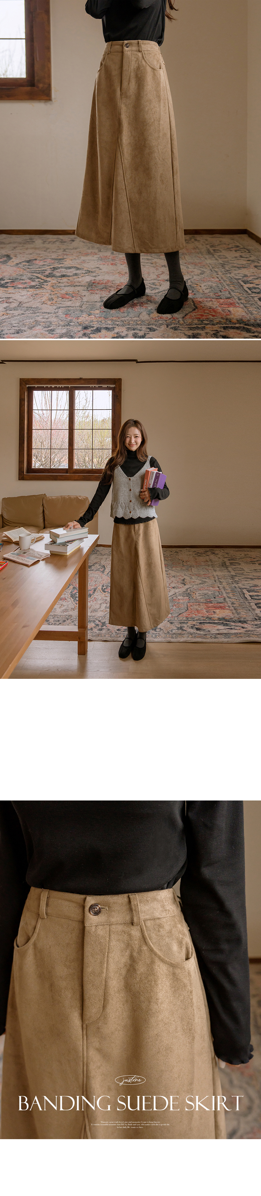 This skirt has a soft suede touch and is comfortable to wear, and its A-line silhouette makes it a great item for daily wear.
