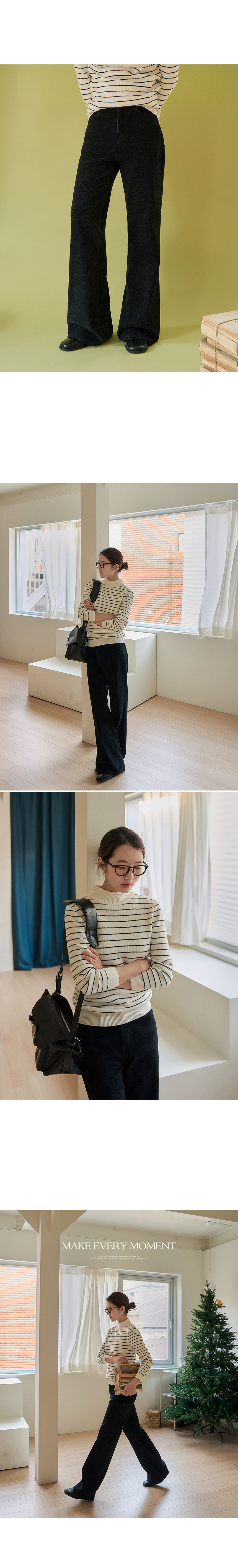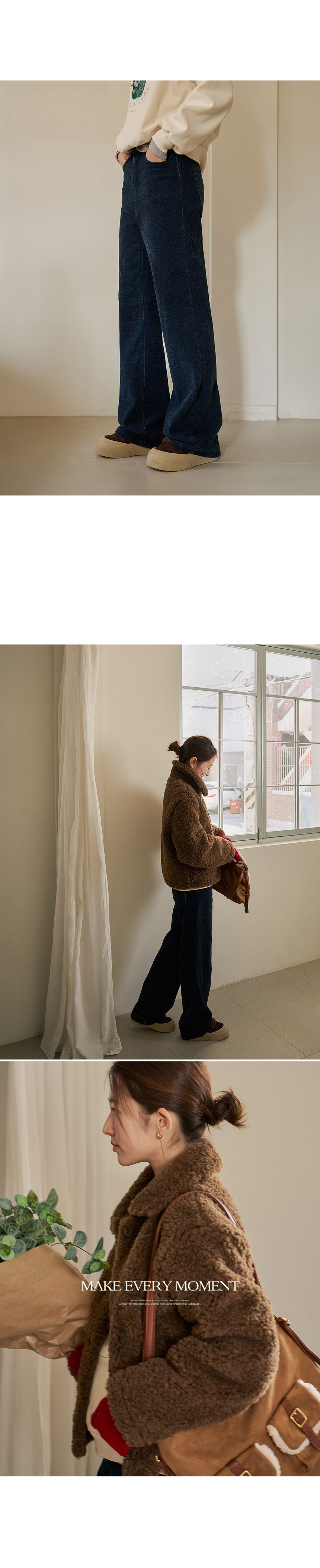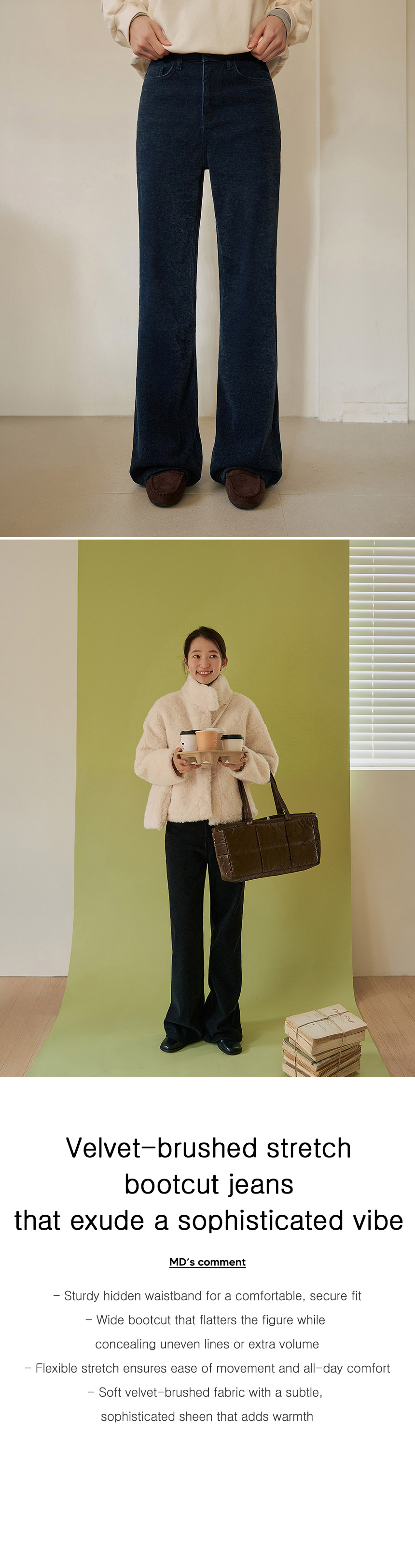 Luxurious velvet-brushed denim delivers both softness and warmth. The wide bootcut silhouette flatters the figure while subtly concealing excess, without feeling restrictive. Its flexible stretch ensures comfortable, easy movement.