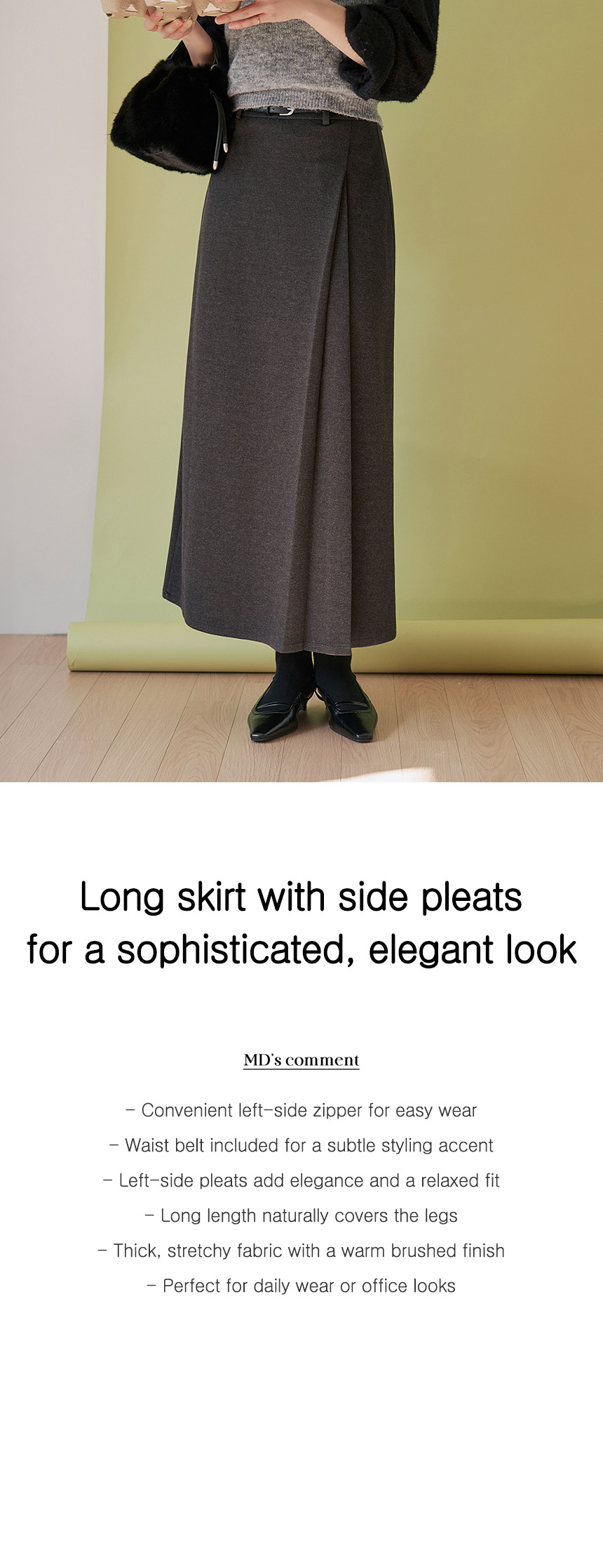 5DA32365HN_Side Pleated Fleece Long Skirt (Belt Set)