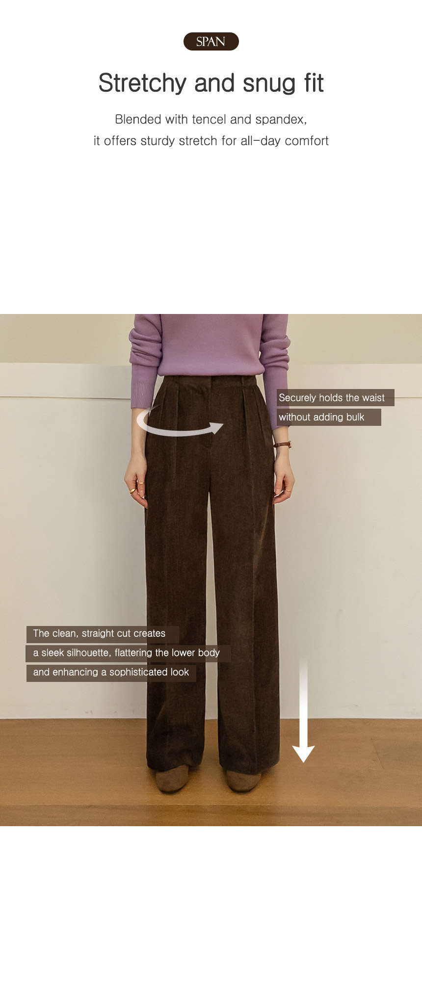These brushed slacks offer a sophisticated, chic look. The elastic waistband ensures a comfortable fit, while the pintuck details add a flattering touch. Perfect for any occasion.