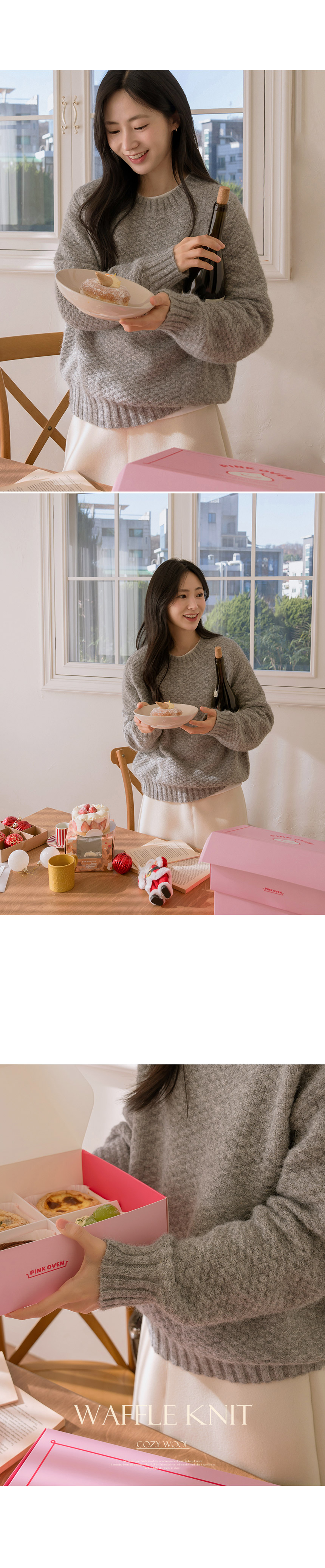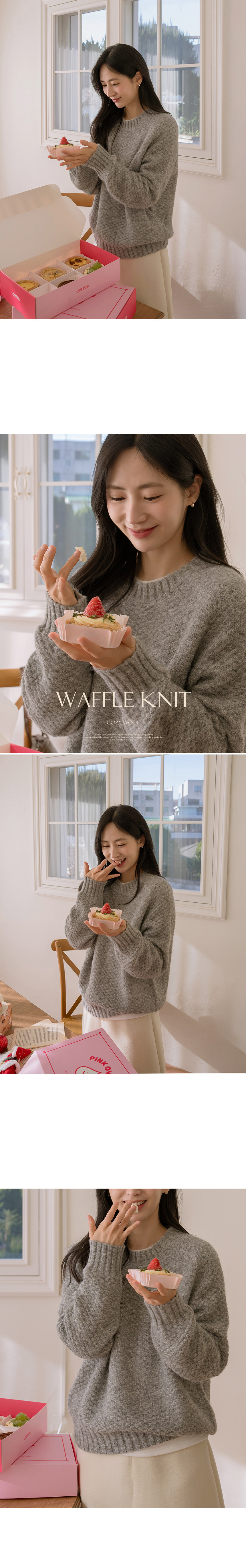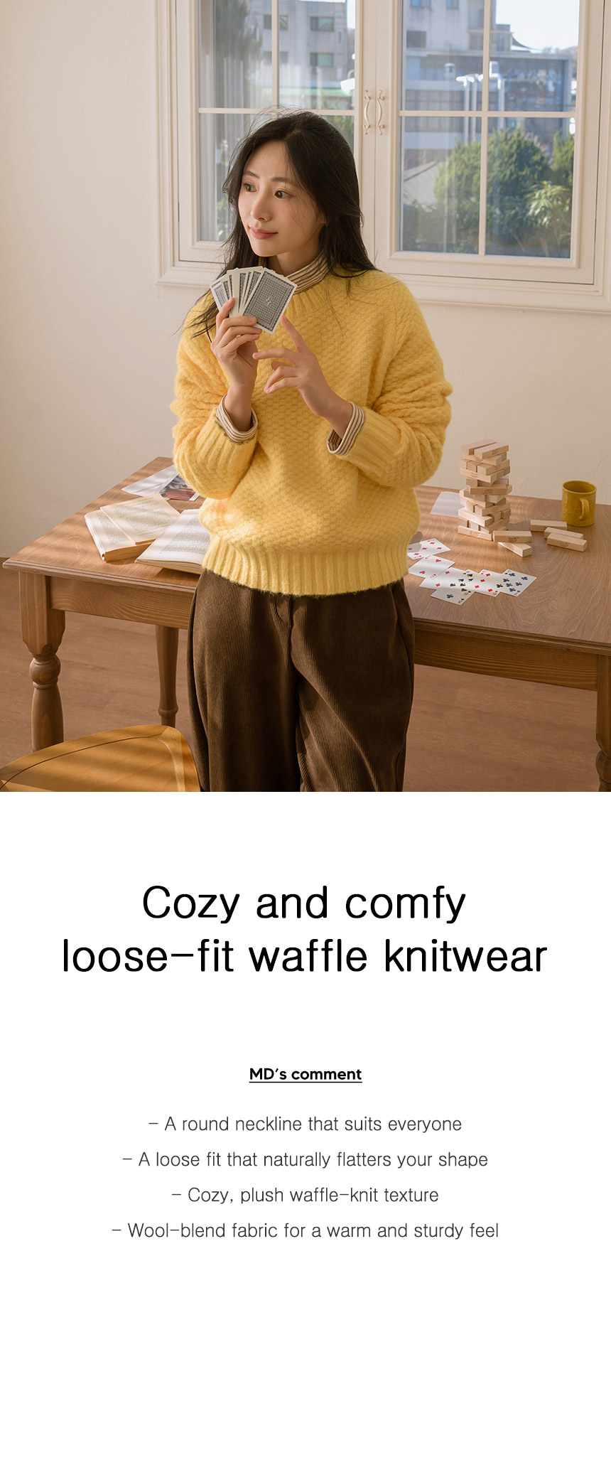 6DA32376HN_Cozy Wool Loose Fit Waffle Knitwear