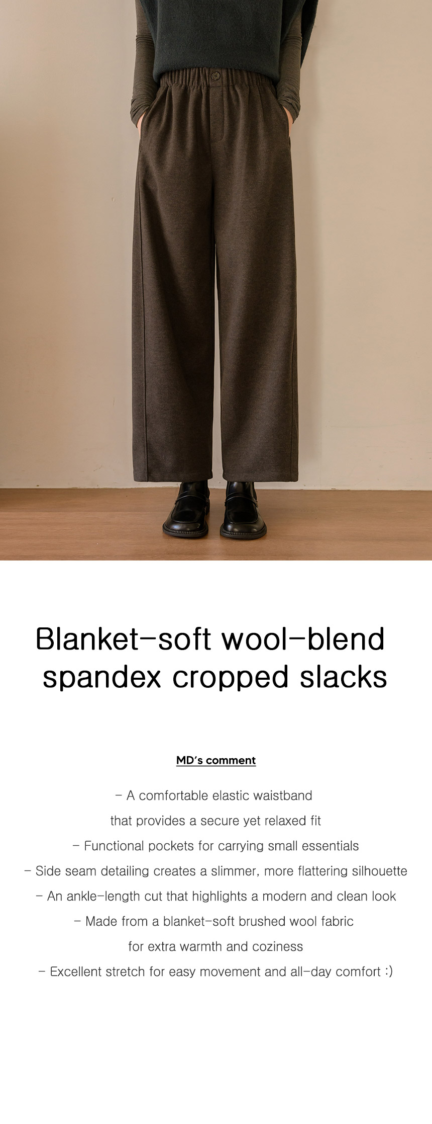 The cropped length slightly reveals the ankles, creating a neat mood. The thick, stretchy wool material is perfect for keeping you warm in the winter.