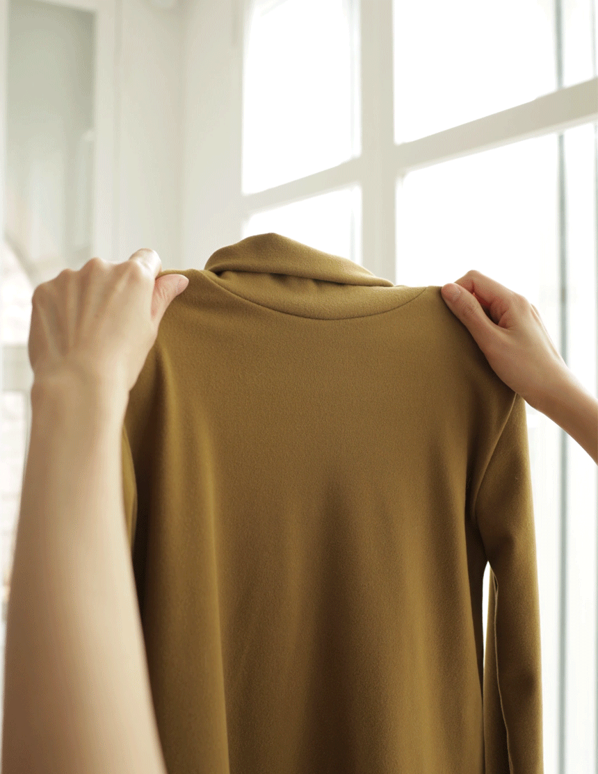 Made with soft yet stretchy double-brushed fleece fabric, this piece feels warm, cozy, and comfortable even in the middle of winter. The sturdy turtleneck wraps snugly around your neck, so you won’t even need a muffler~