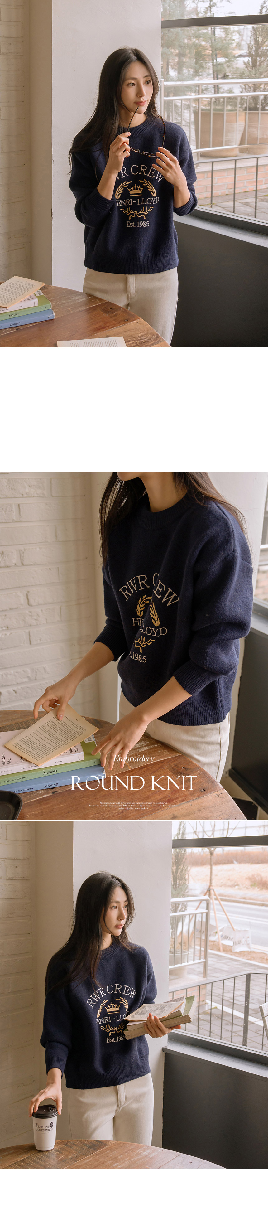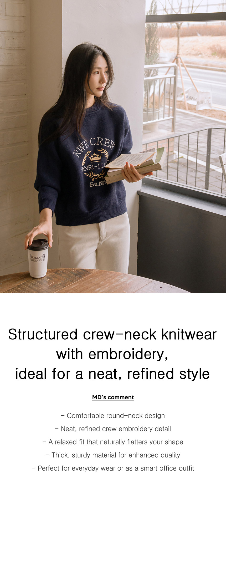 6DA32426CW_Crew Embroidery Sturdy-fit Round Knitwear