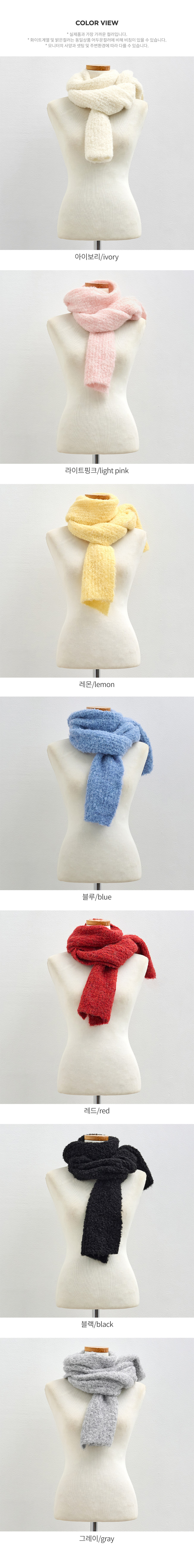 This muffler is made of thick and soft boucle material that keeps your neck warm. The colors are attractive and great for adding a key point to your outfit.