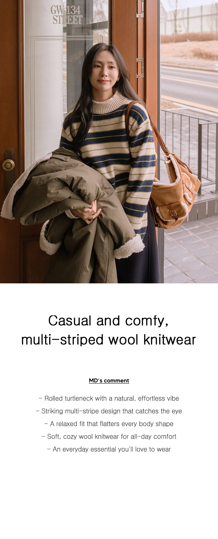 6DA32423NN_Lens Multi-stripe Wool Turtleneck Knitwear