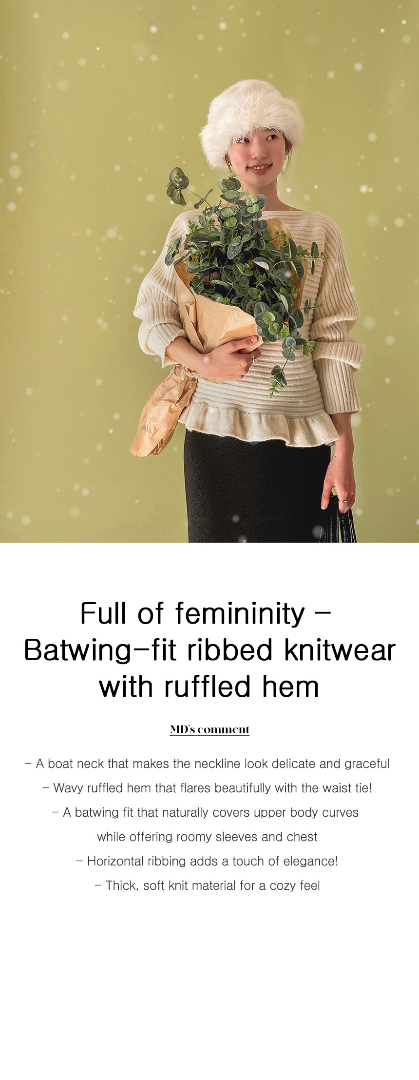 5DA32362JJ_Batwing Fit Ruffled Hem Ribbed Knitwear