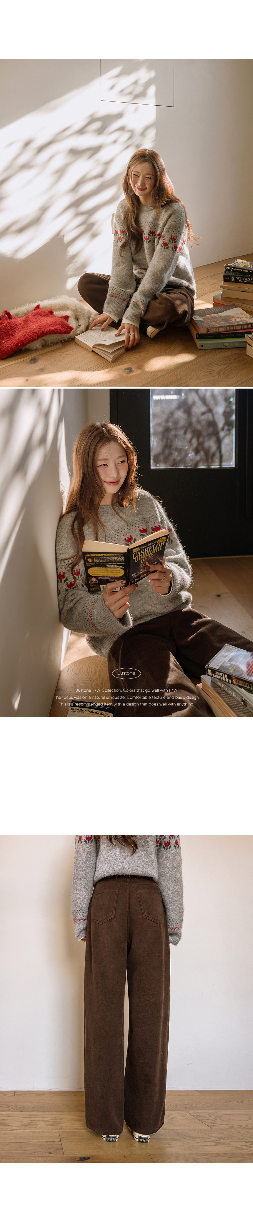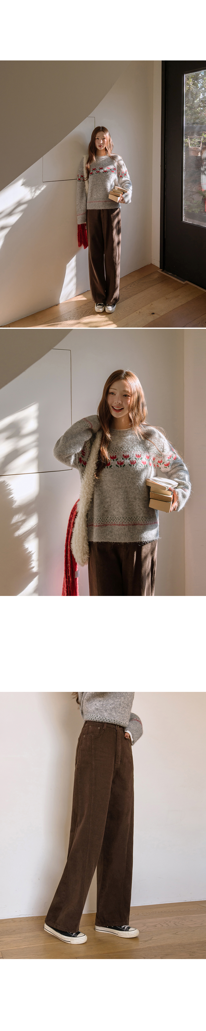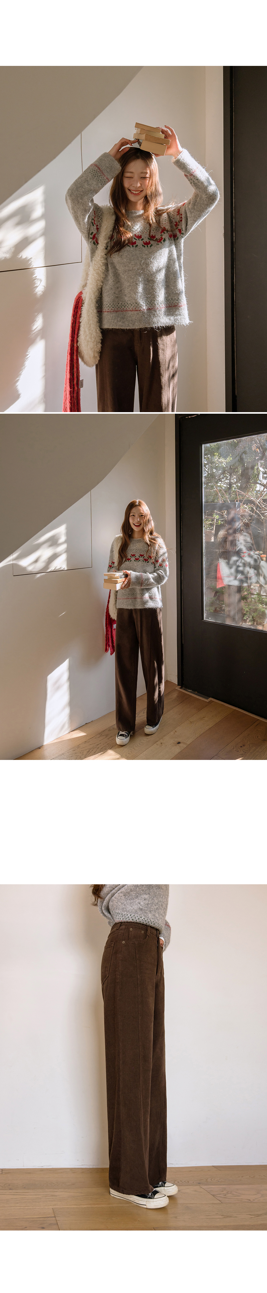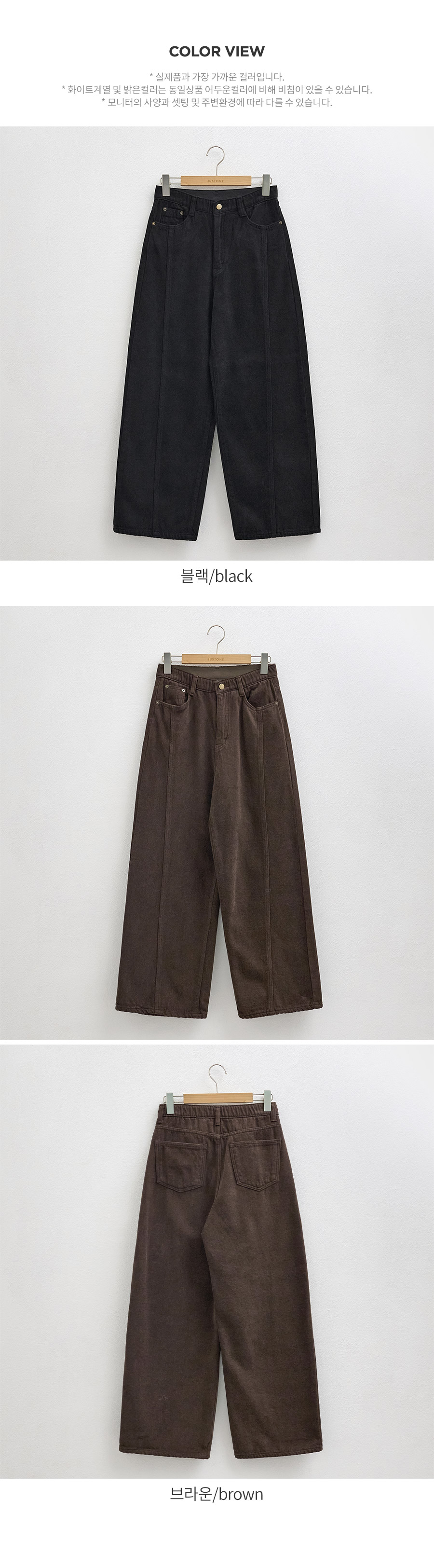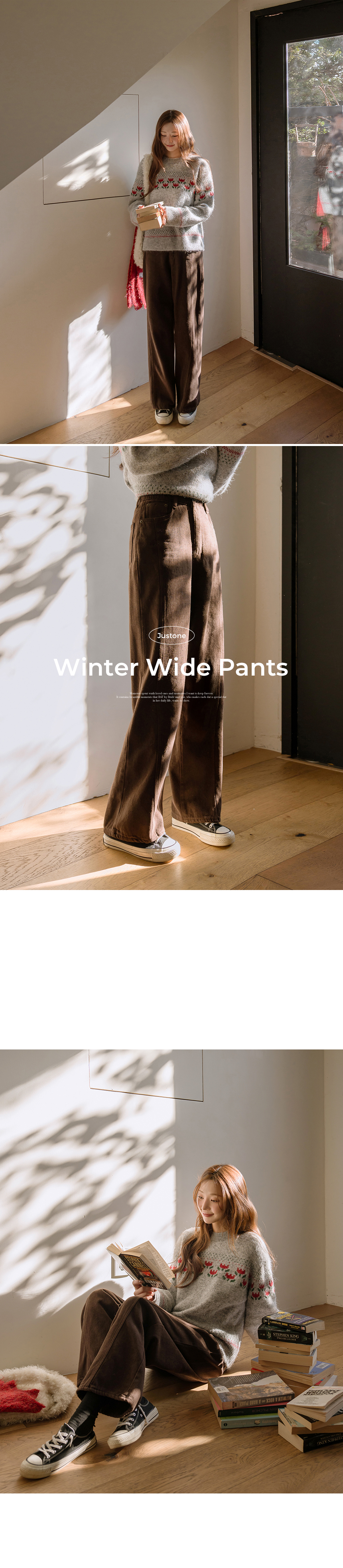 These wide pants have a soft and cozy texture that keeps your legs warm. The hidden banding on the inside of the waist makes them comfortable to wear! The seam line on the side adds a slimming effect to your legs.