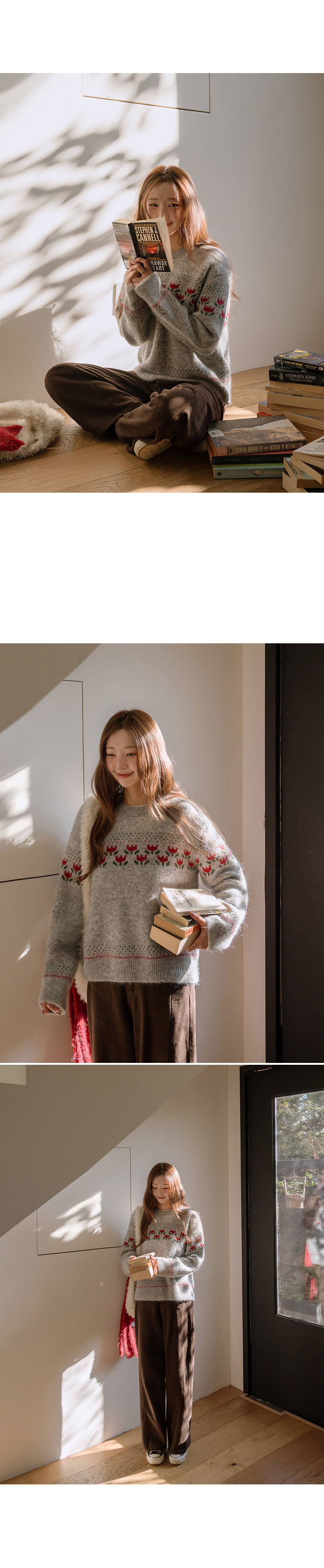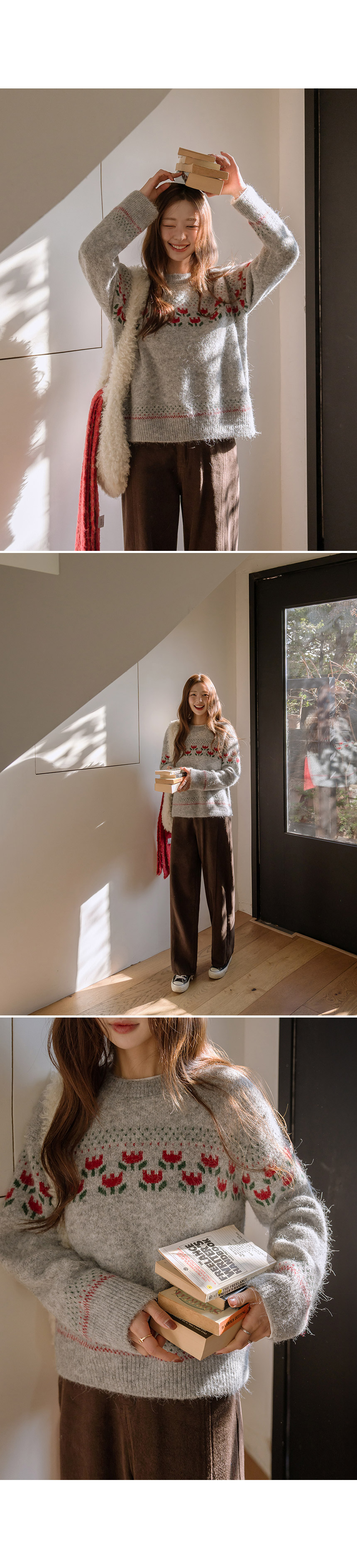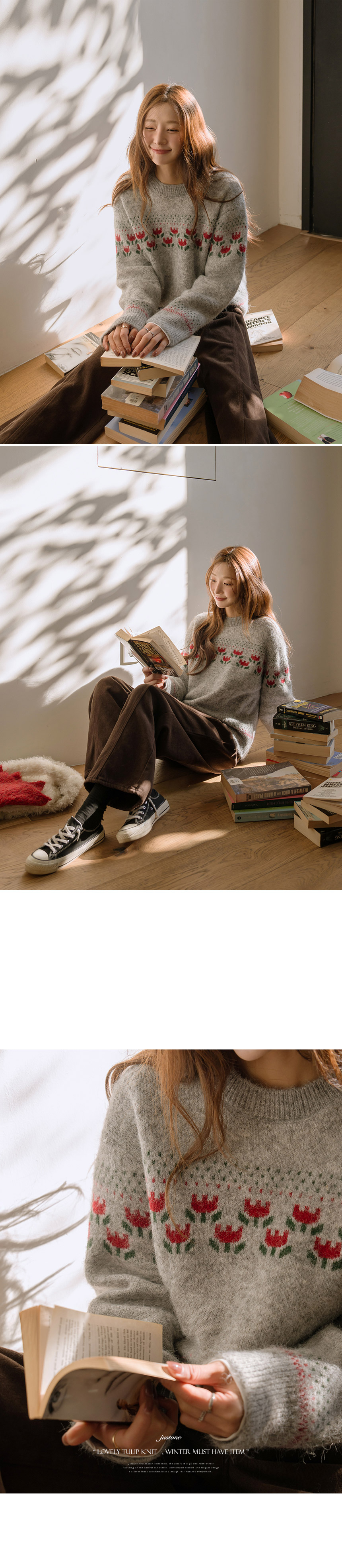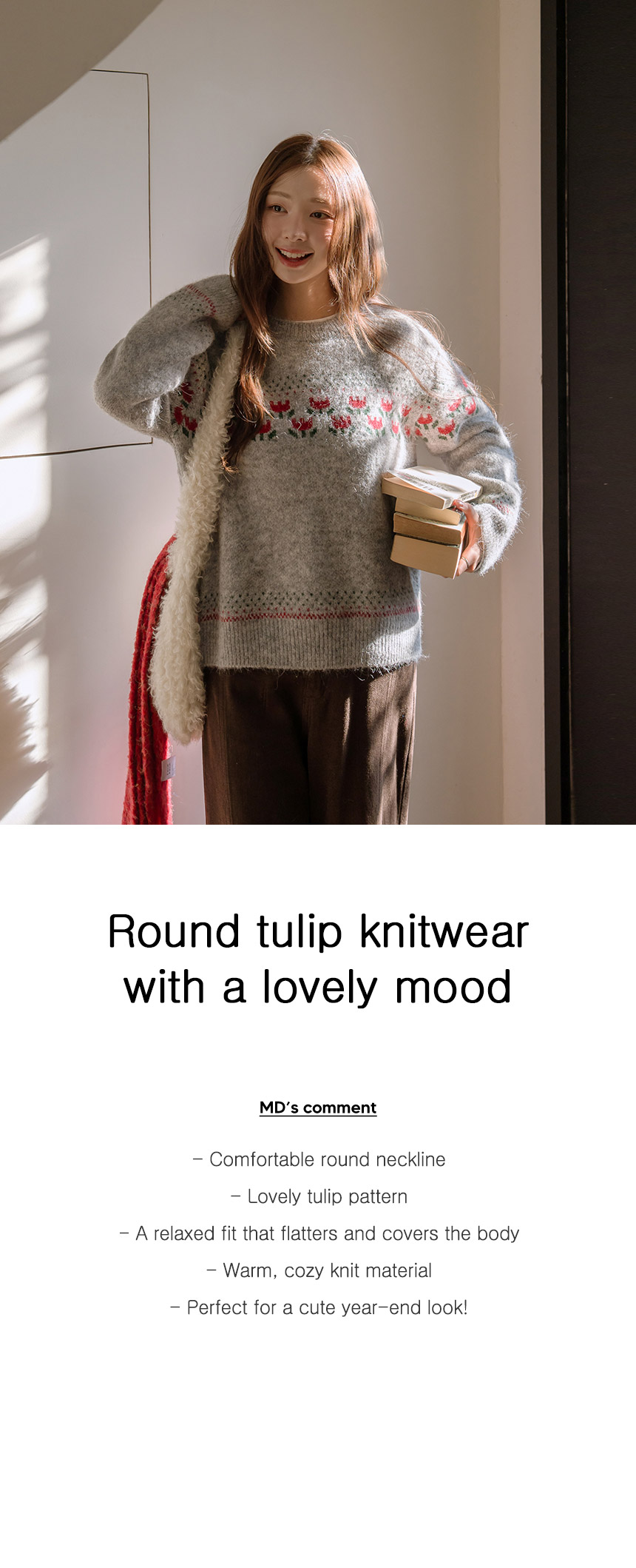 The pretty tulip pattern creates a lovely mood, and the soft, cozy knit material makes this item perfect to wear warmly in the winter!