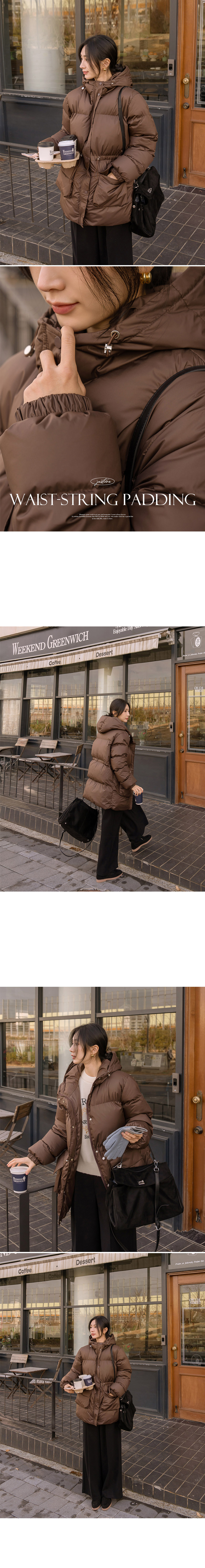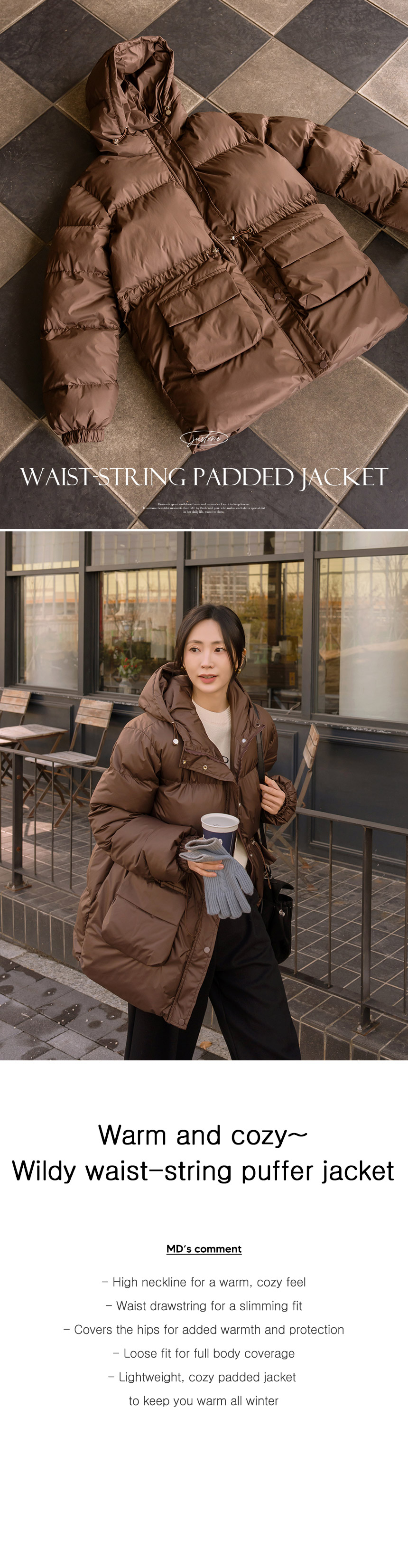 This padded jacket features a relaxed fit that comfortably hides any extra bulk. Lightweight yet warm, it’s perfect for winter! The adjustable waist drawstring lets you customize the fit to your liking.