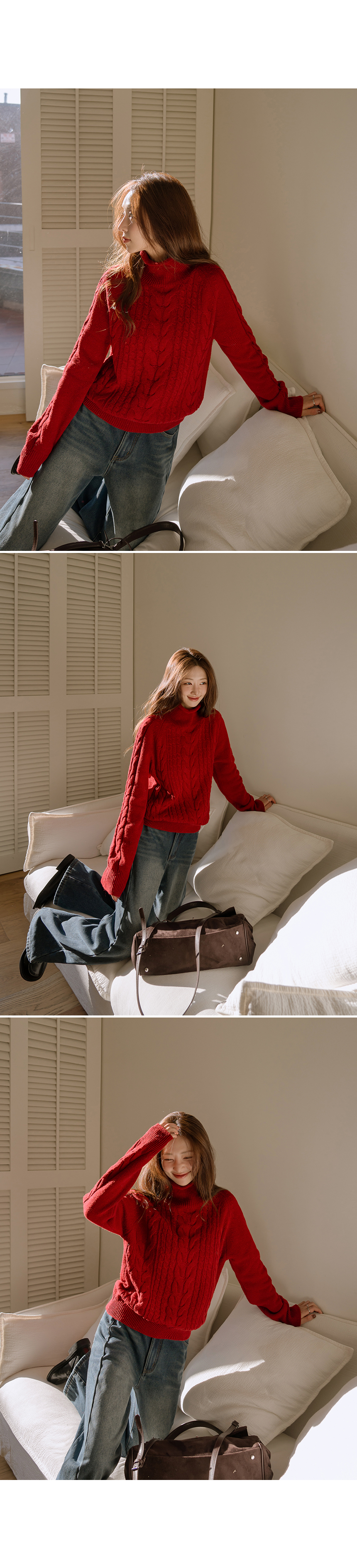 Featuring a three-dimensional cable knit, this turtleneck sweater is made from a luxurious and warm 50% lambswool blend, making it perfect for daily wear and cozy enough to wear on its own.