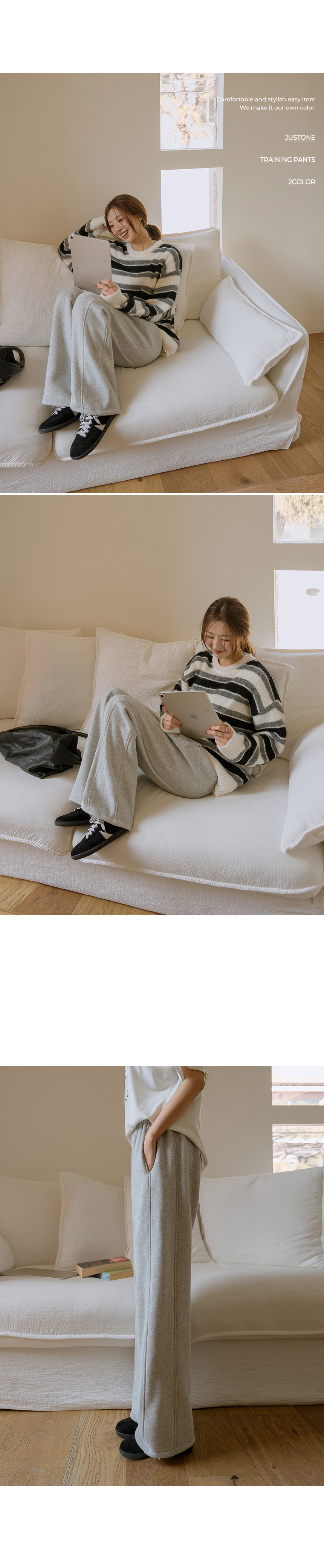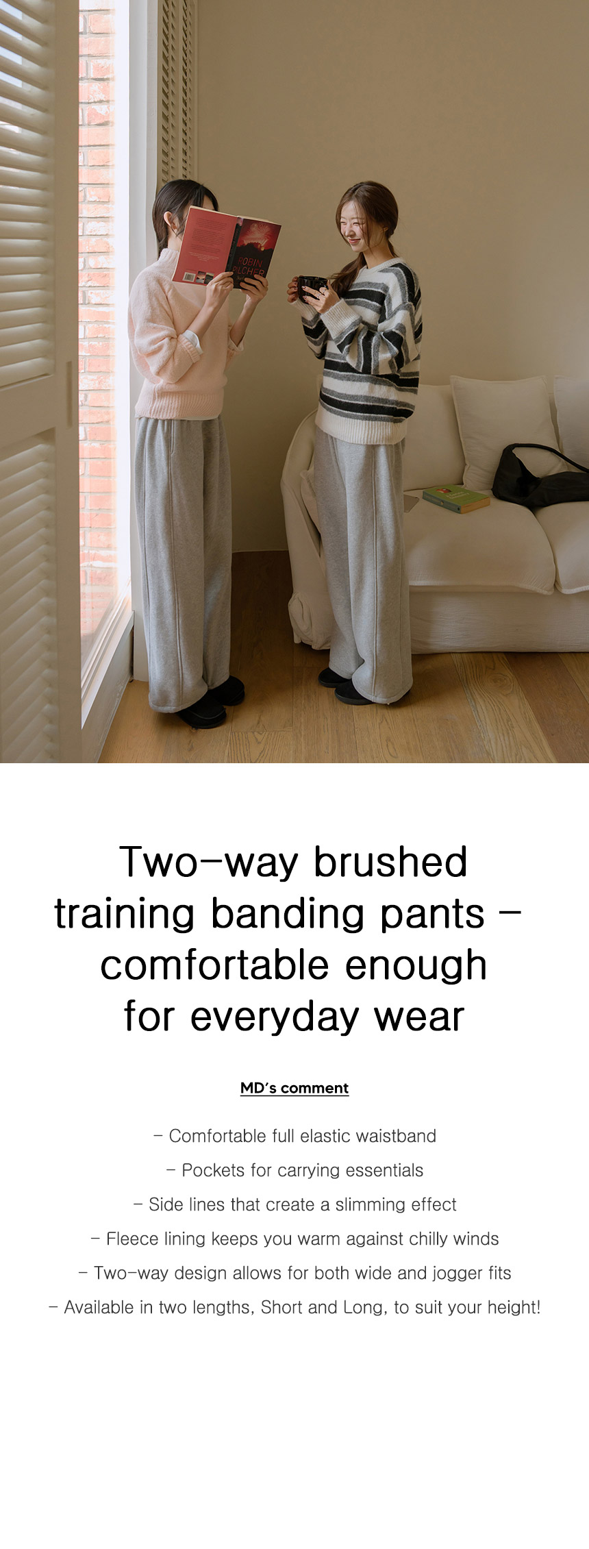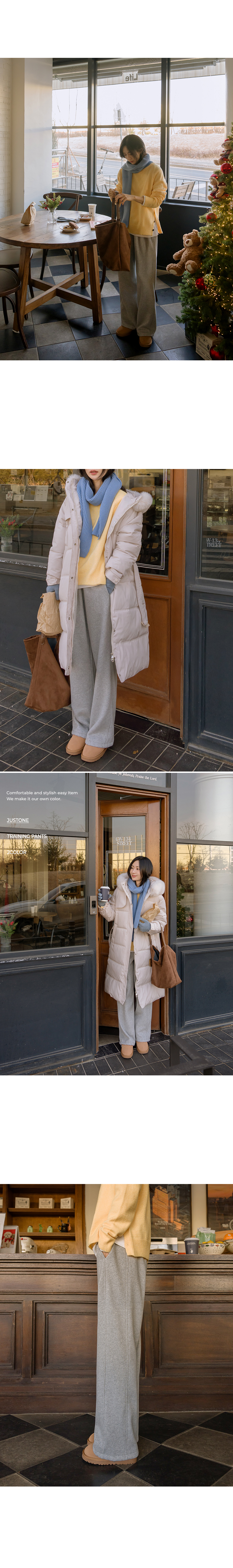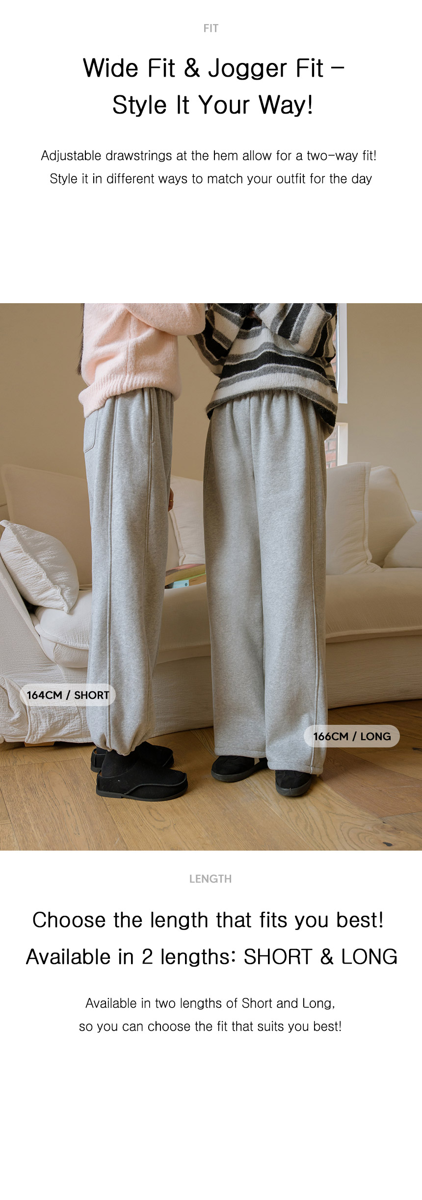These training pants feature two silhouettes of Jogger and Wide Fit, with adjustable drawstrings at the hems. Made with thick brushed fleece, they provide cozy warmth for winter. They are also available in two lengths: Short and Long.