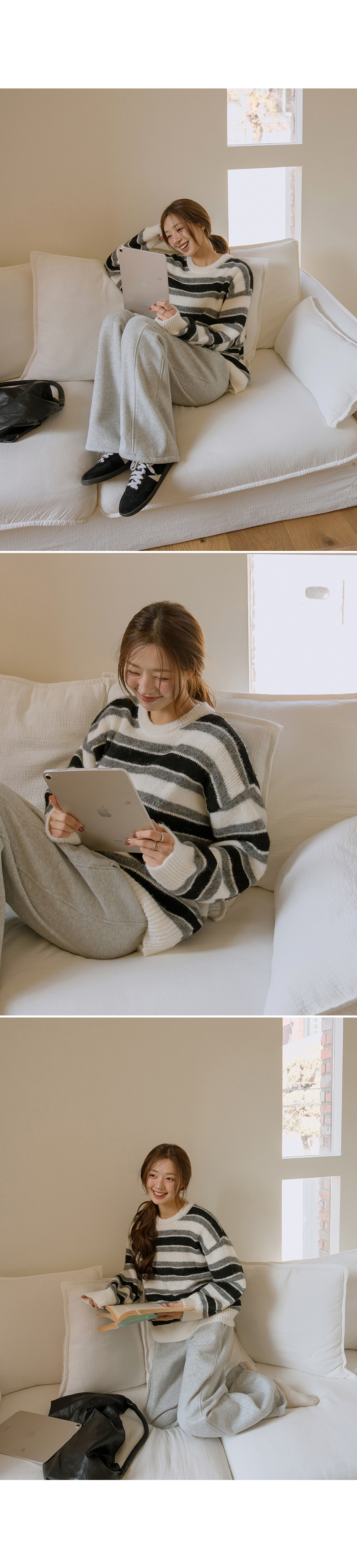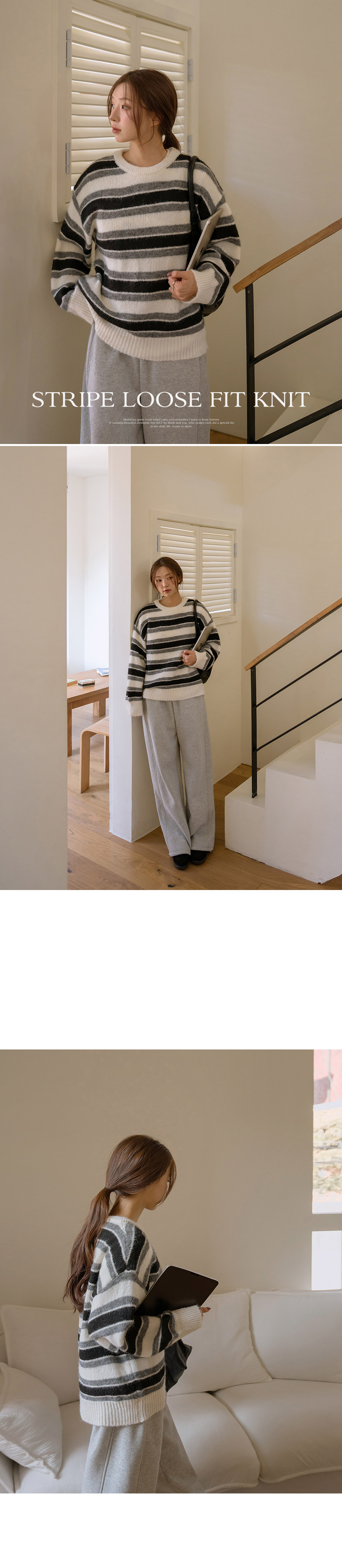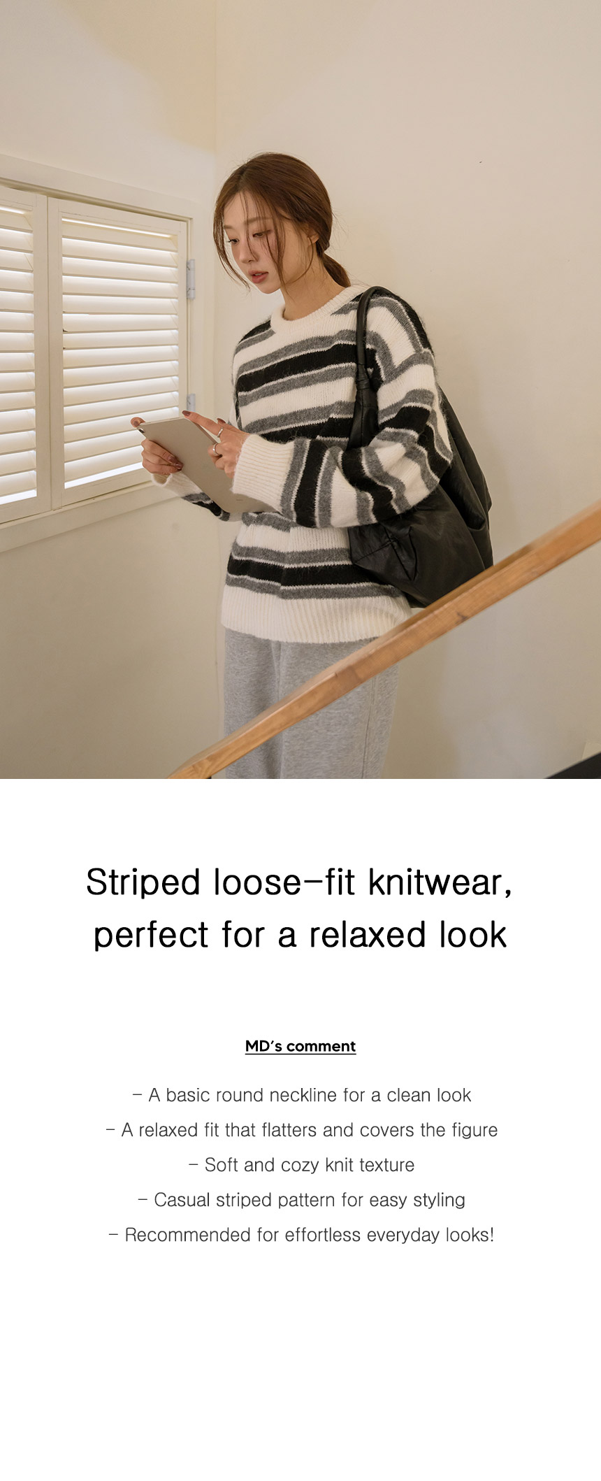 This comfortable, loose-fit knit features a casual striped pattern, making it perfect for everyday wear. Lightweight and cozy, it’s the kind of knit you’ll want to reach for again and again.