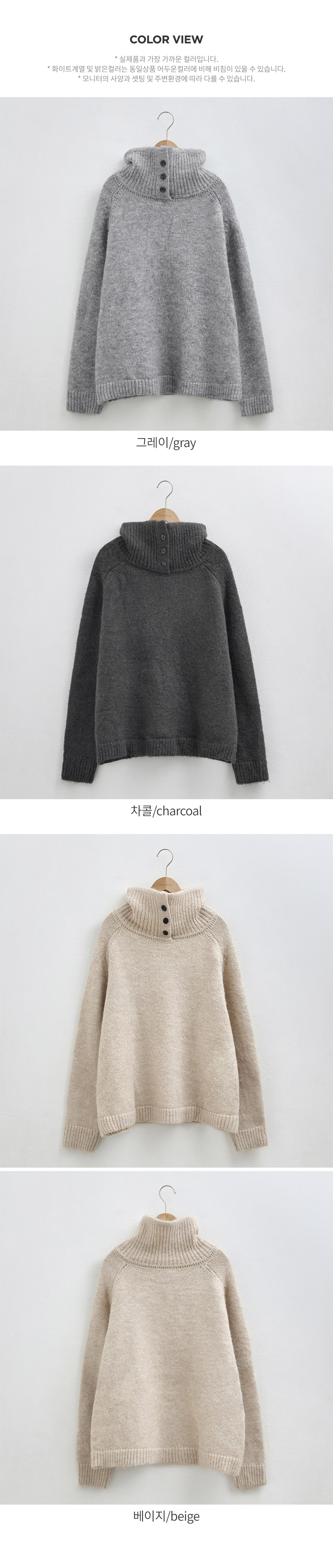 This turtleneck knitwear can be buttoned up to create a high-neck look. The loose fit covers your body shape, making it a comfortable item to wear!
