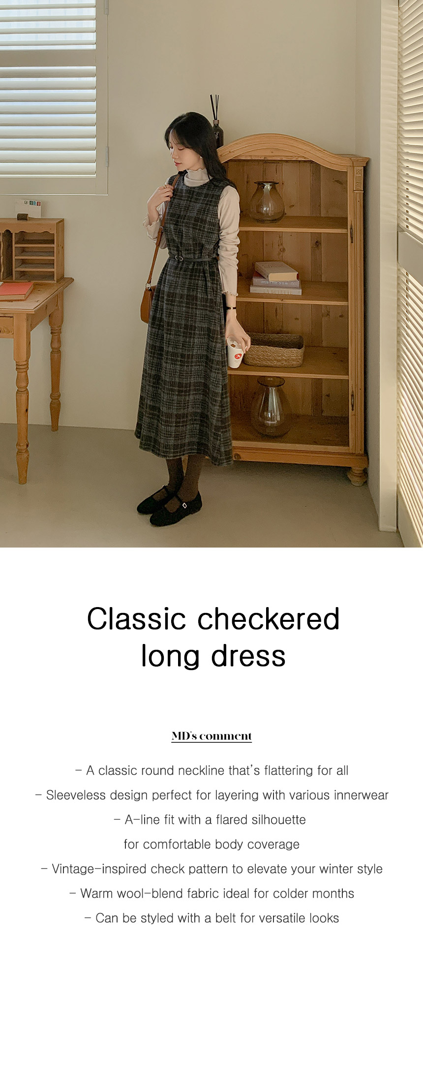 This is a long dress that is perfect for creating a feminine look in winter. It has a vintage check pattern as a focal point and the A-line fit flatters the body shape, making it a comfortable item to wear.