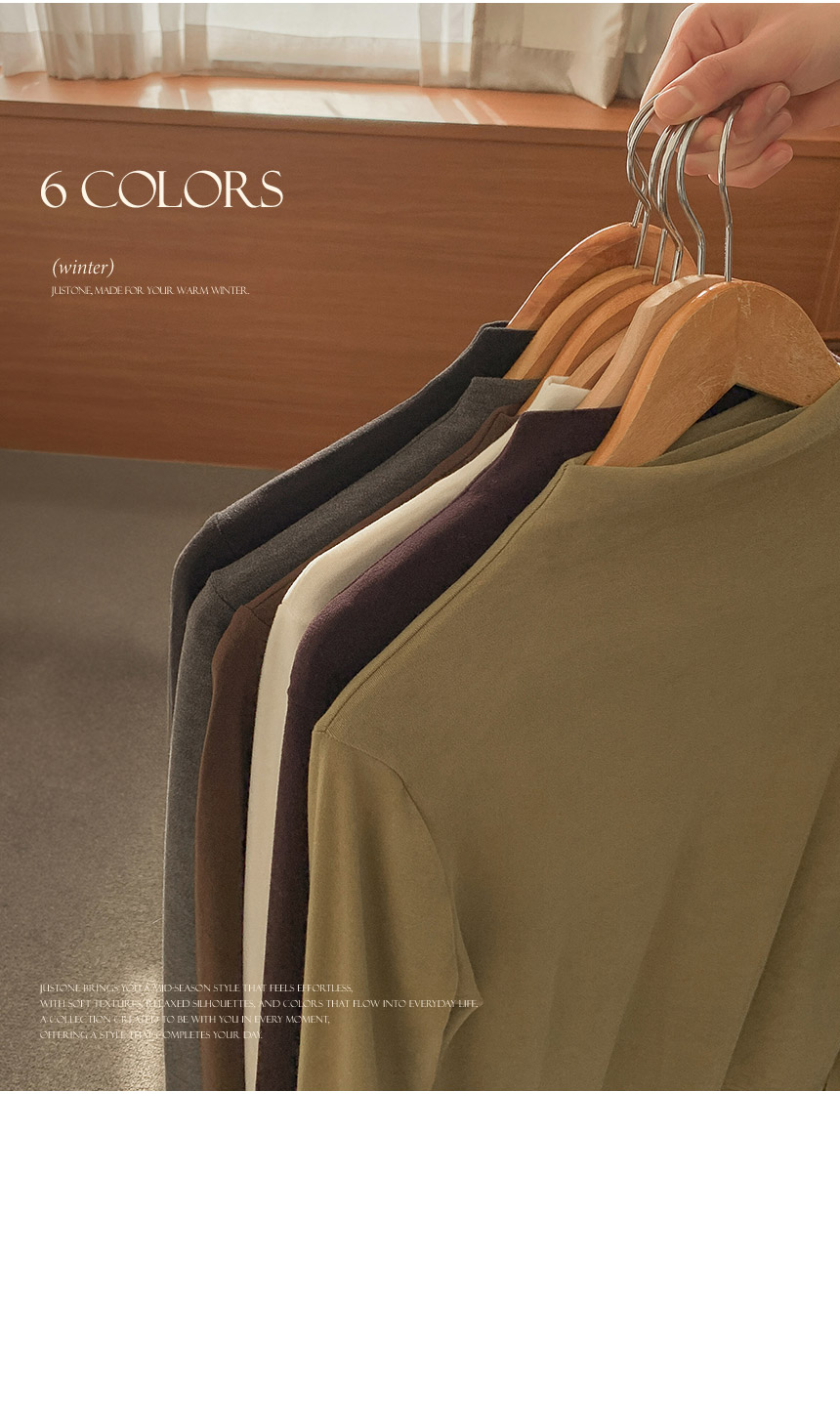 This is a soft-touch T-shirt with a simple design but you can feel the difference the moment you put it on. It is an item that creates a pretty silhouette with a natural fit that falls on the body and feels comfortable with its great elasticity.
