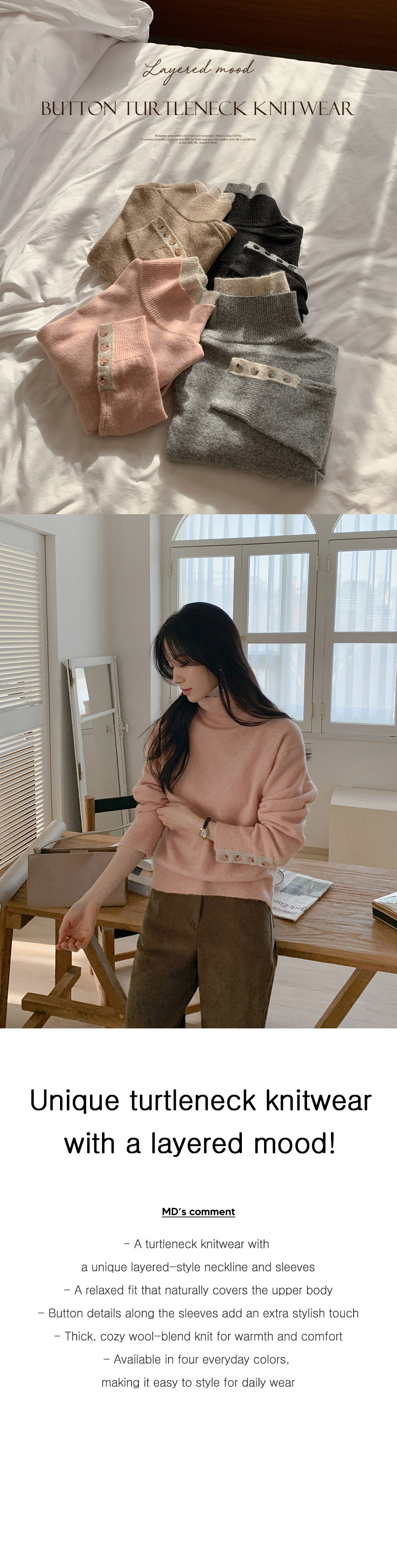 4DA32464HN_Layered Mood Turtleneck Knitwear with Sleeve Buttons