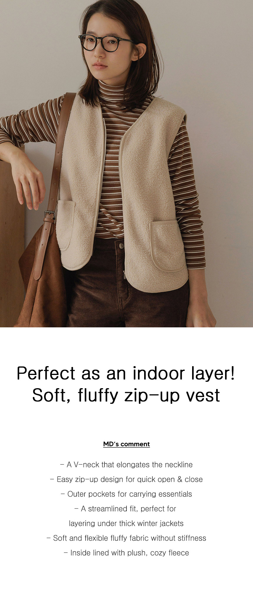 Made from soft, flexible teddy fleece with no stiffness, this vest features a convenient zip-up design for easy wear. It can be worn on its own indoors or layered outdoors, making it a highly versatile piece.