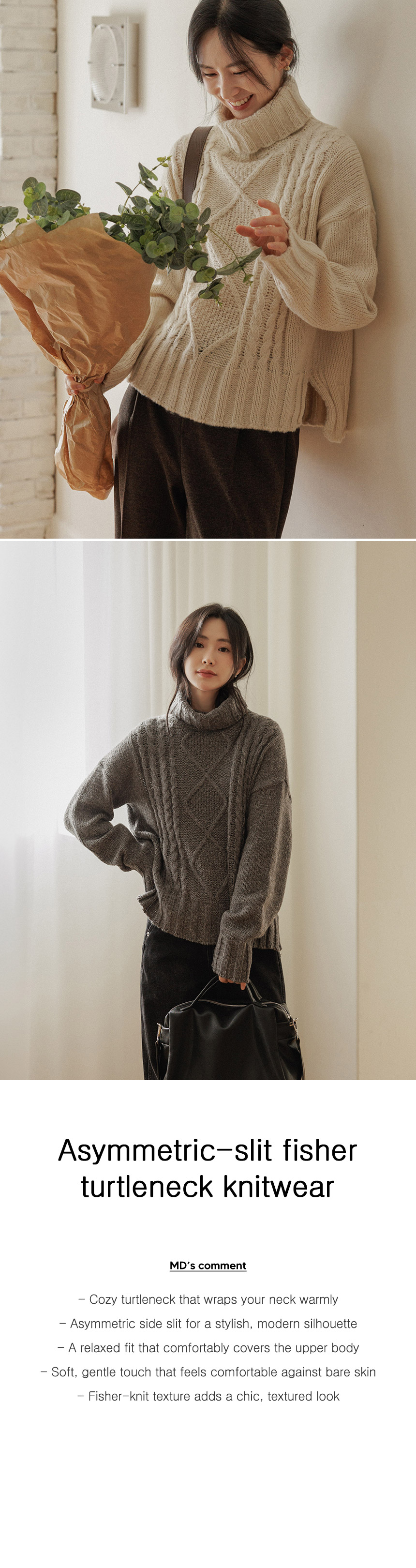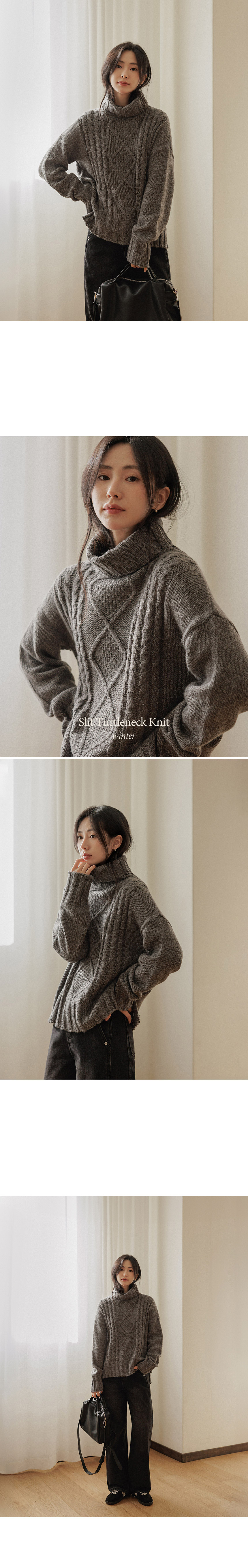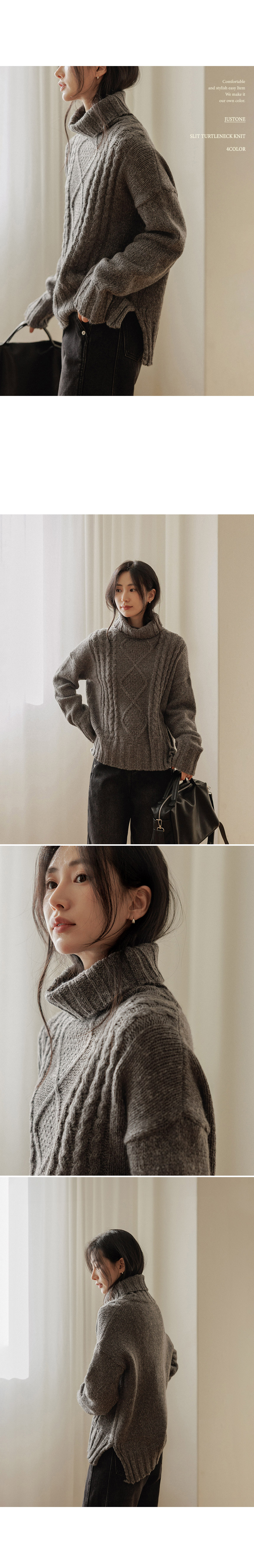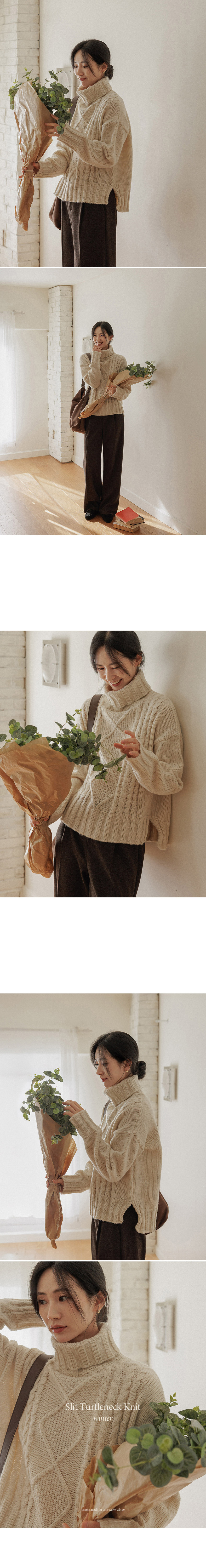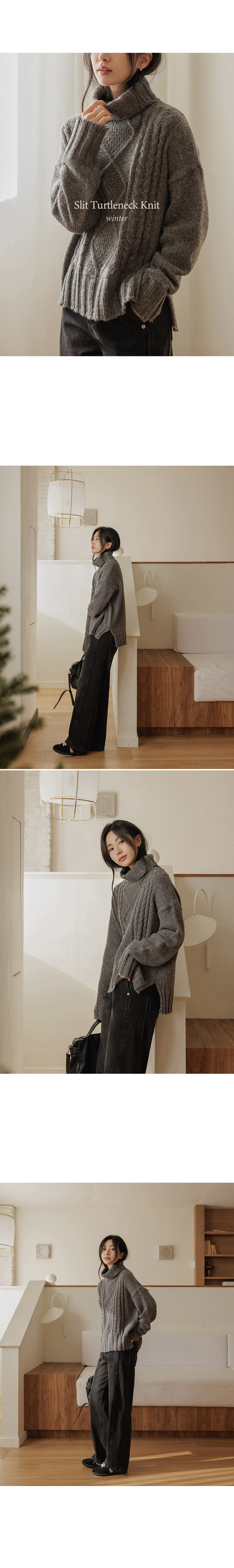 5DA32498JJ_Mir Asymmetrical Slit Fisher Turtleneck Knitwear