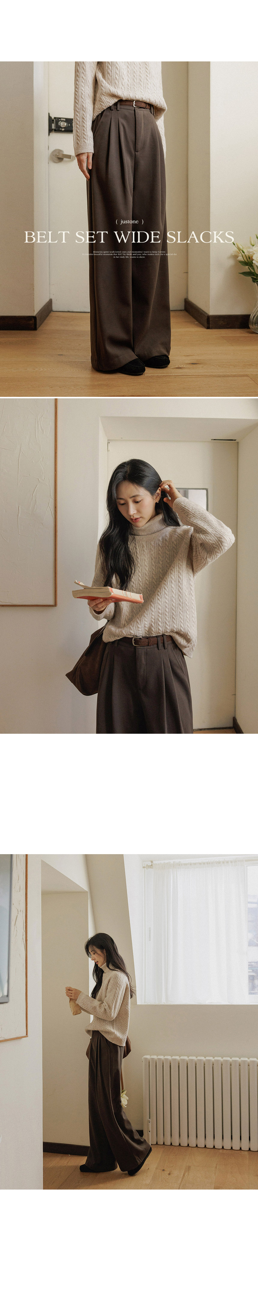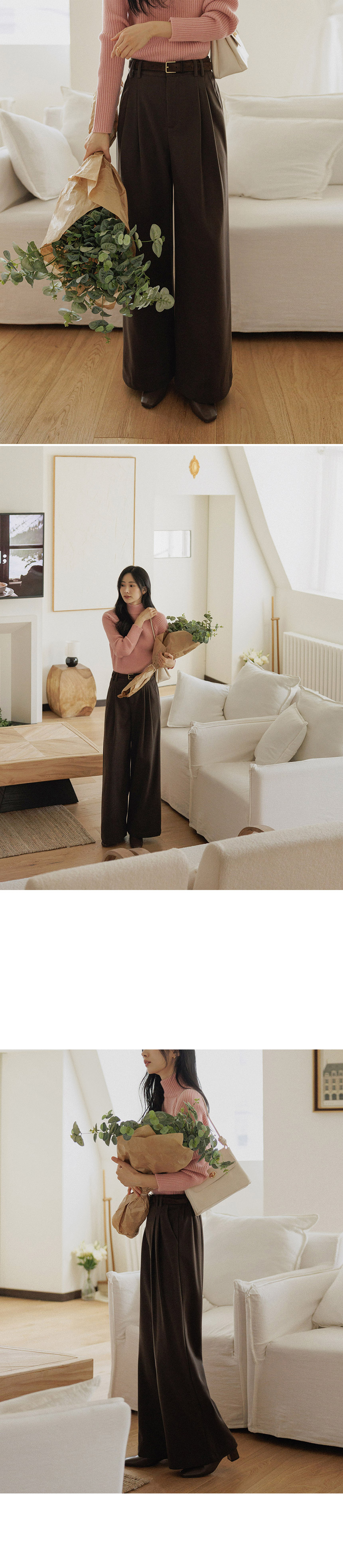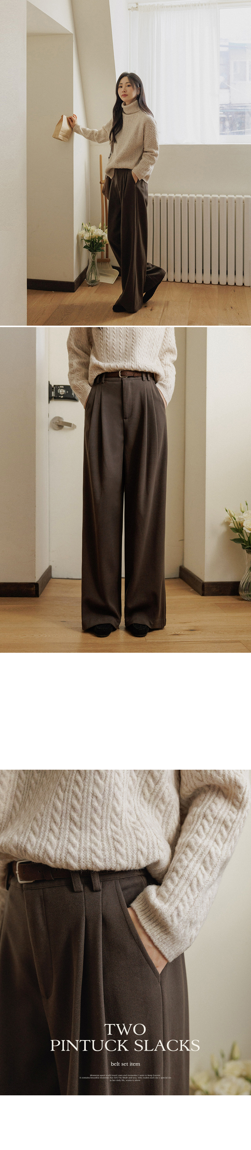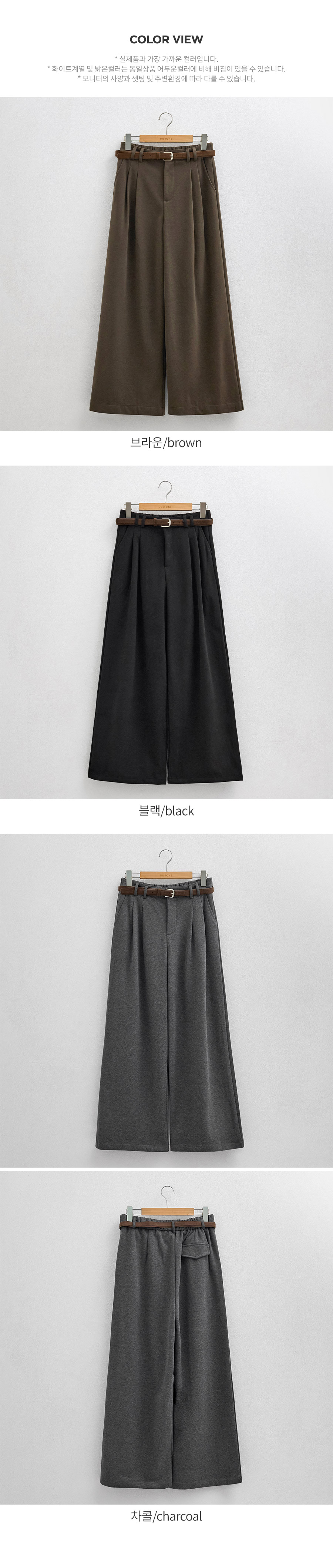 5DA32491NN_Heads Fleece Two-Pintuck Wide Slacks (Belt Set)