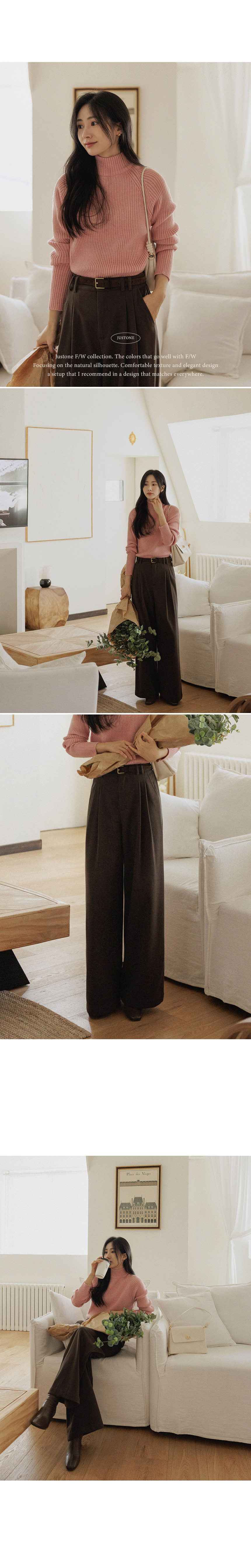 - 5DA32486NN_Stretchy Ribbed Thick Mock Neck Knitwear