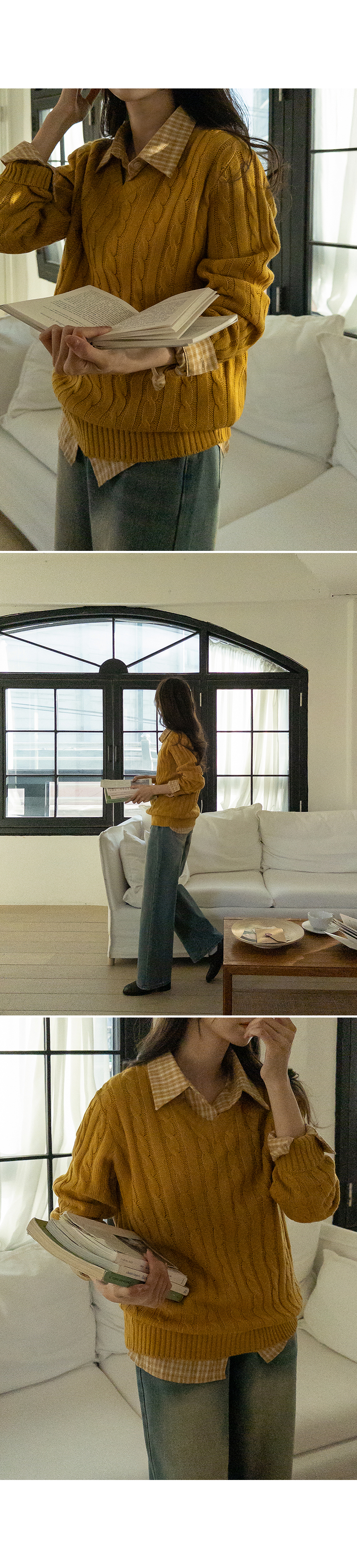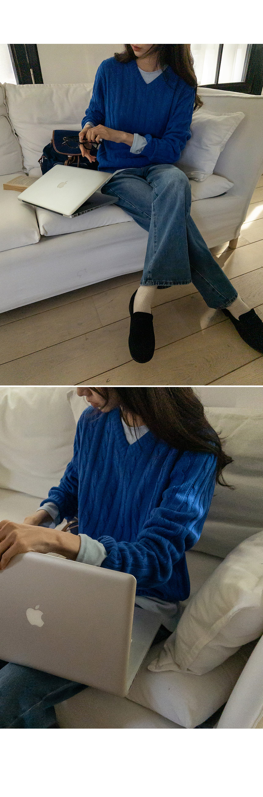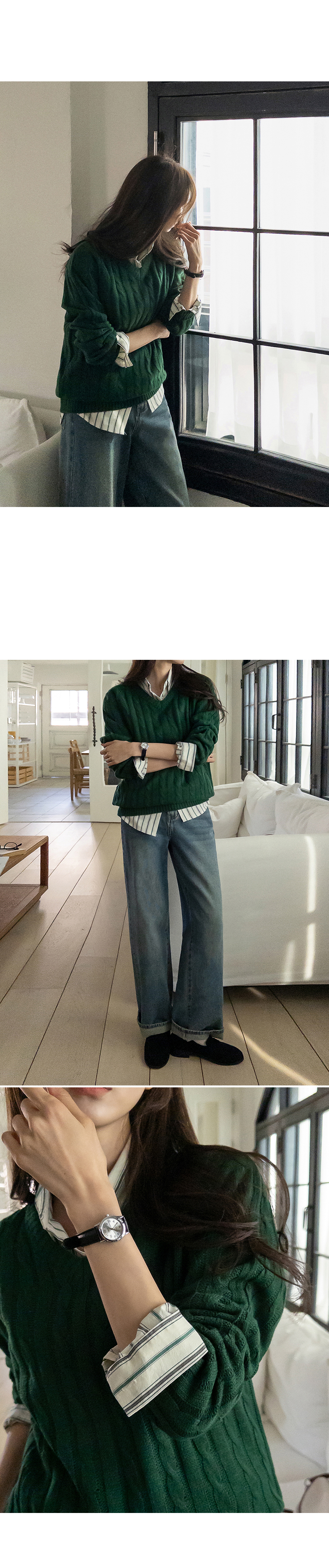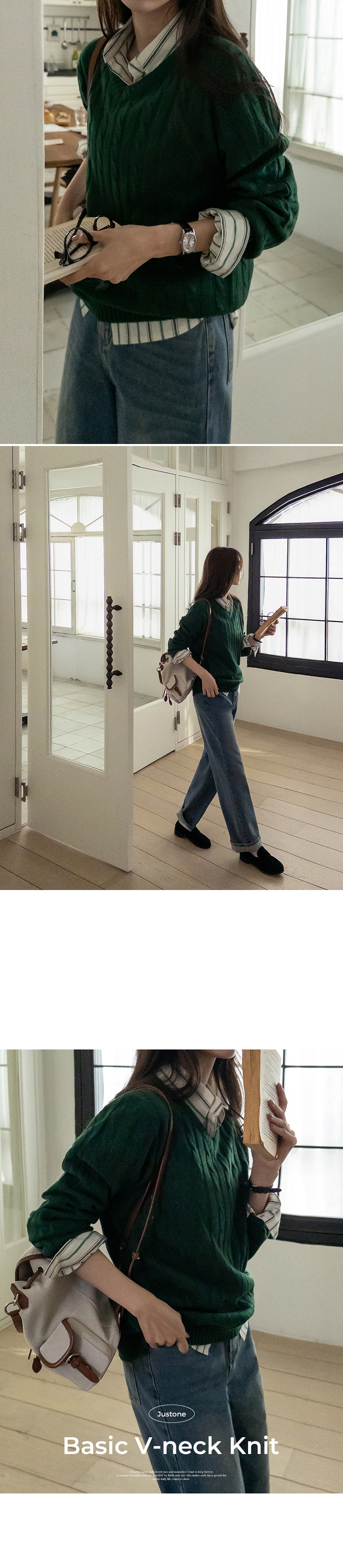This is two-size cable V-neck knitwear, available in two sizes, can be worn as an inner T-shirt. It has a basic design, so it can be used for daily wear as well as work wear. :)