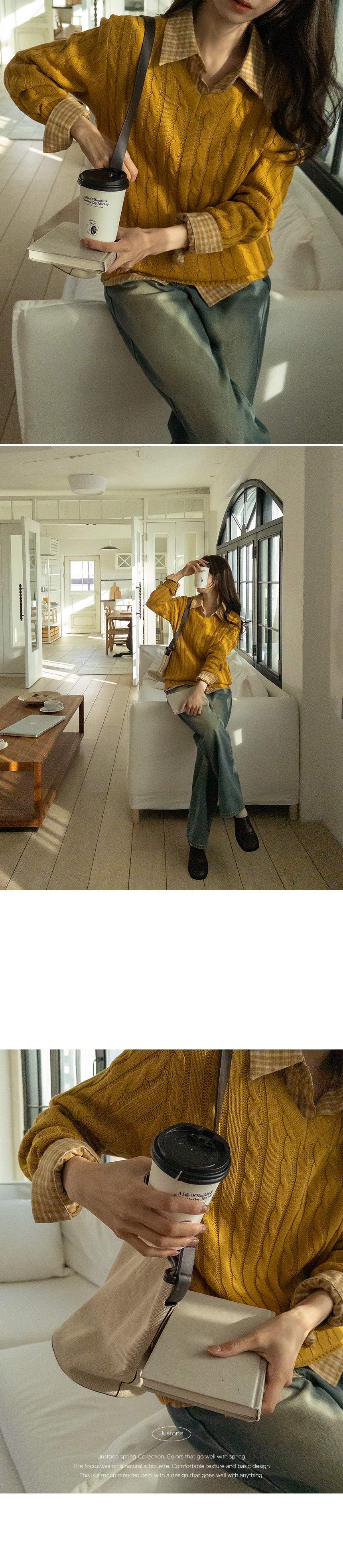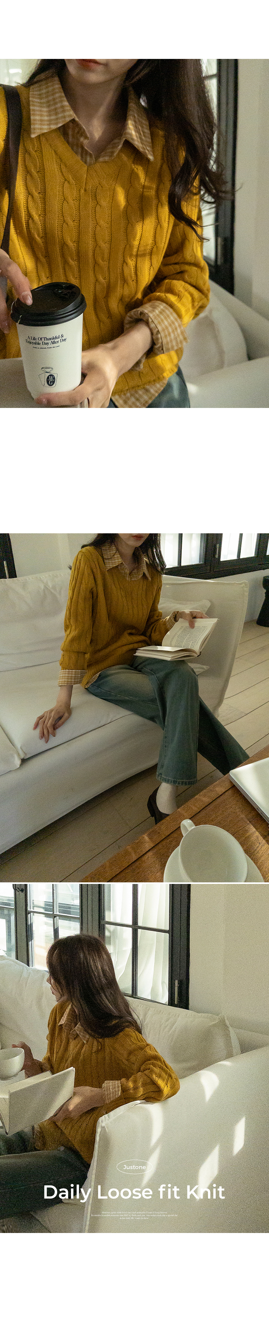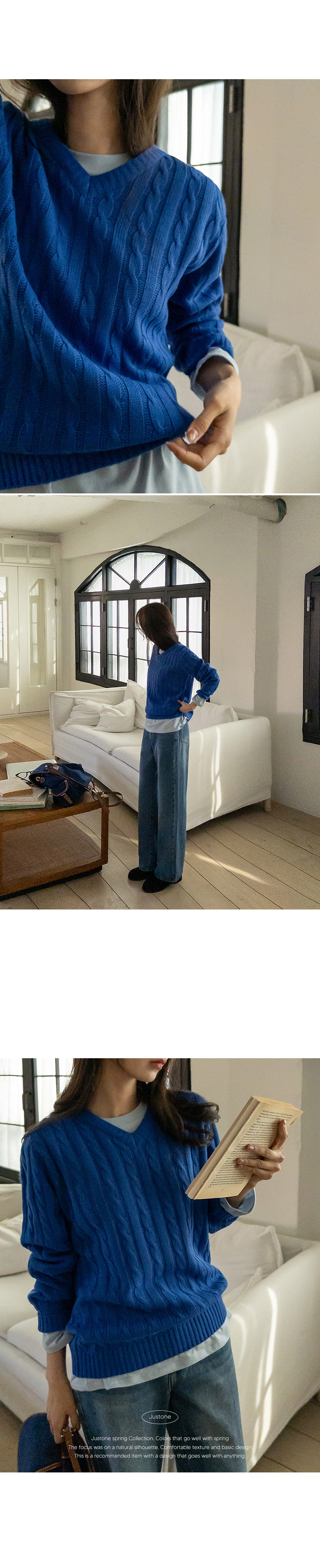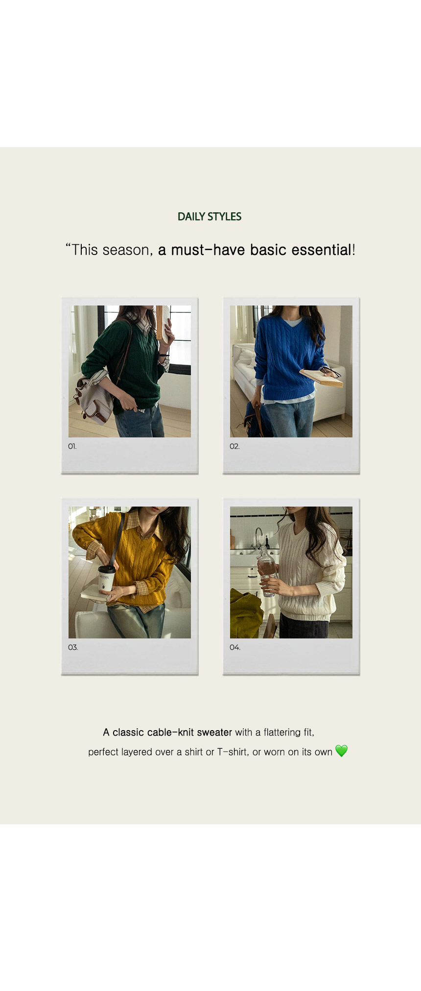 This is two-size cable V-neck knitwear, available in two sizes, can be worn as an inner T-shirt. It has a basic design, so it can be used for daily wear as well as work wear. :)