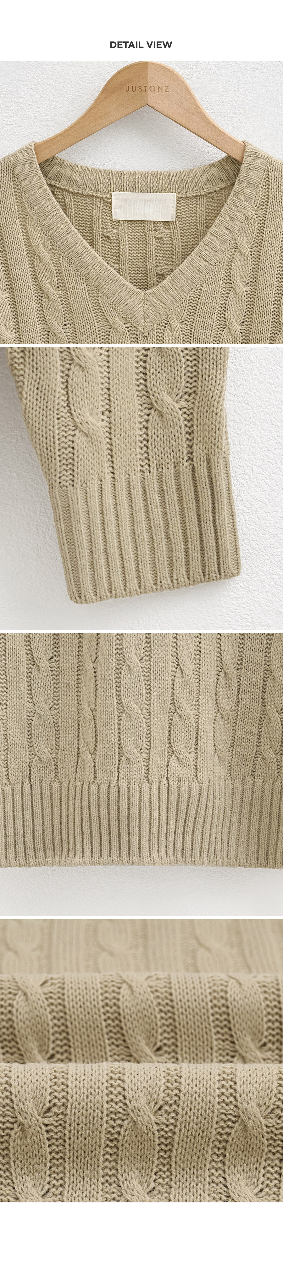 6DA32505NN_Two-Size Cable V-Neck Knitwear
