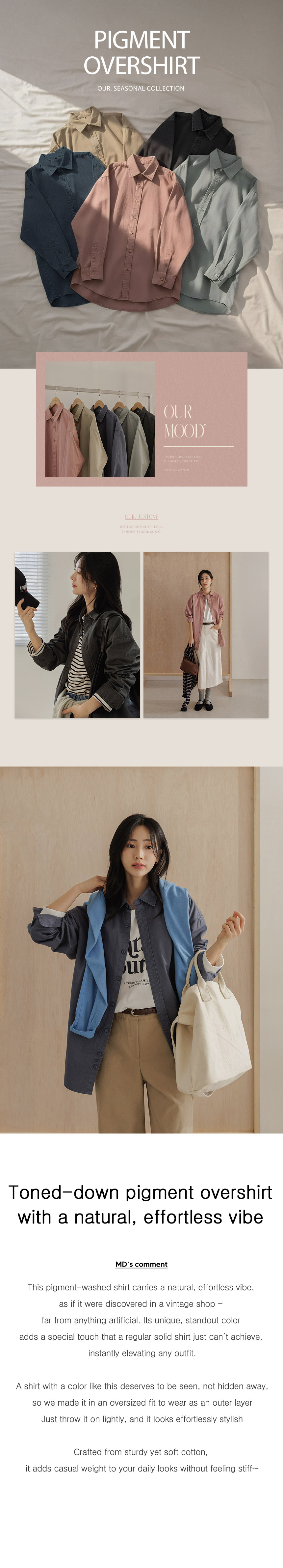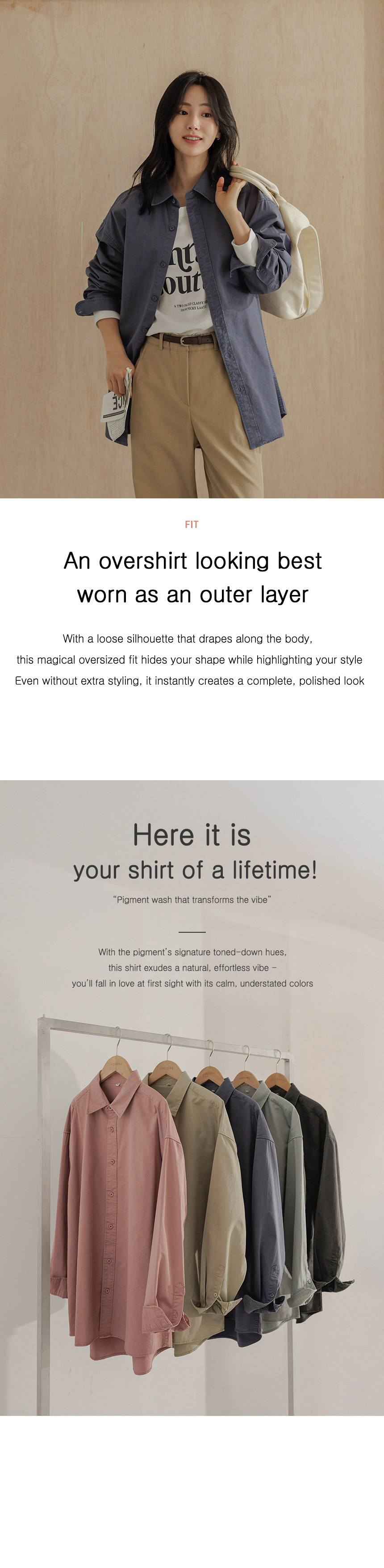 The toned-down natural color of pigment washing creates a chic mood, and the loose oversized fit allows you to complete a stylish look by simply throwing it on as an outerwear!