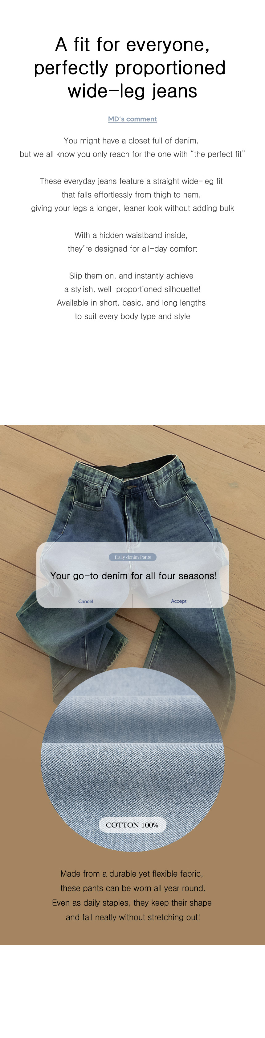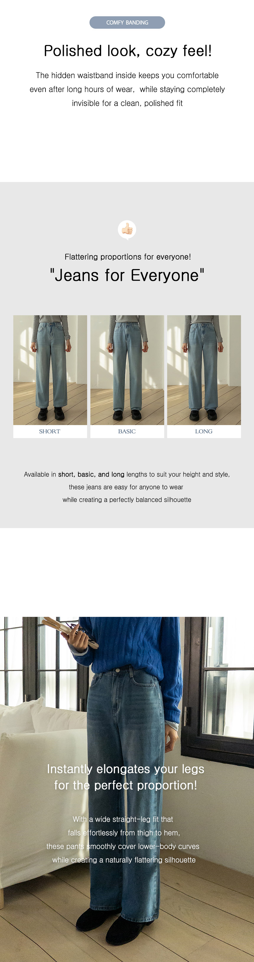 6DA32504NN_Well-Proportioned Hidden-Banding Wide Jeans (Short/Basic/Long)