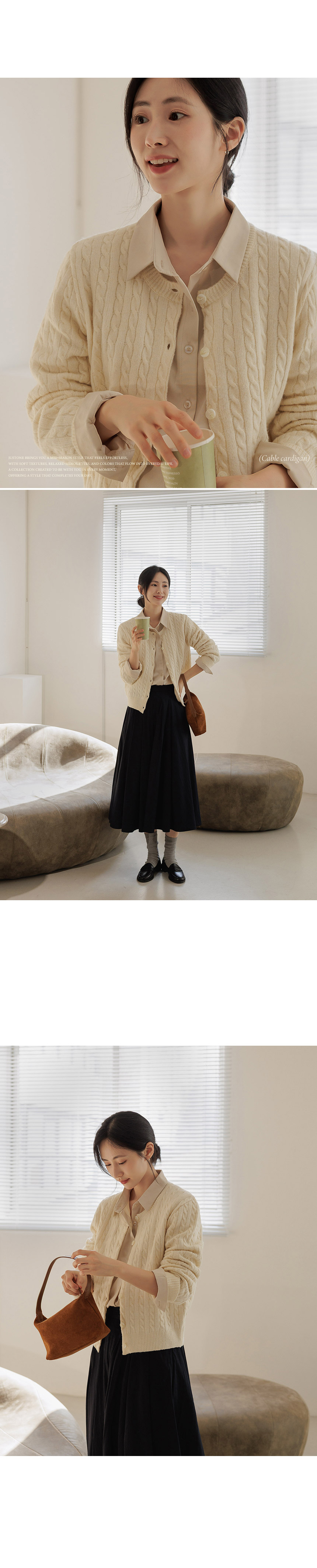 This cardigan is perfect for everyday wear. The soft cable-knit texture adds subtle dimension, while the classic fabric enhances its timeless appeal. Crafted from a lightweight wool blend ideal for spring, it’s an easy piece to wear right now.