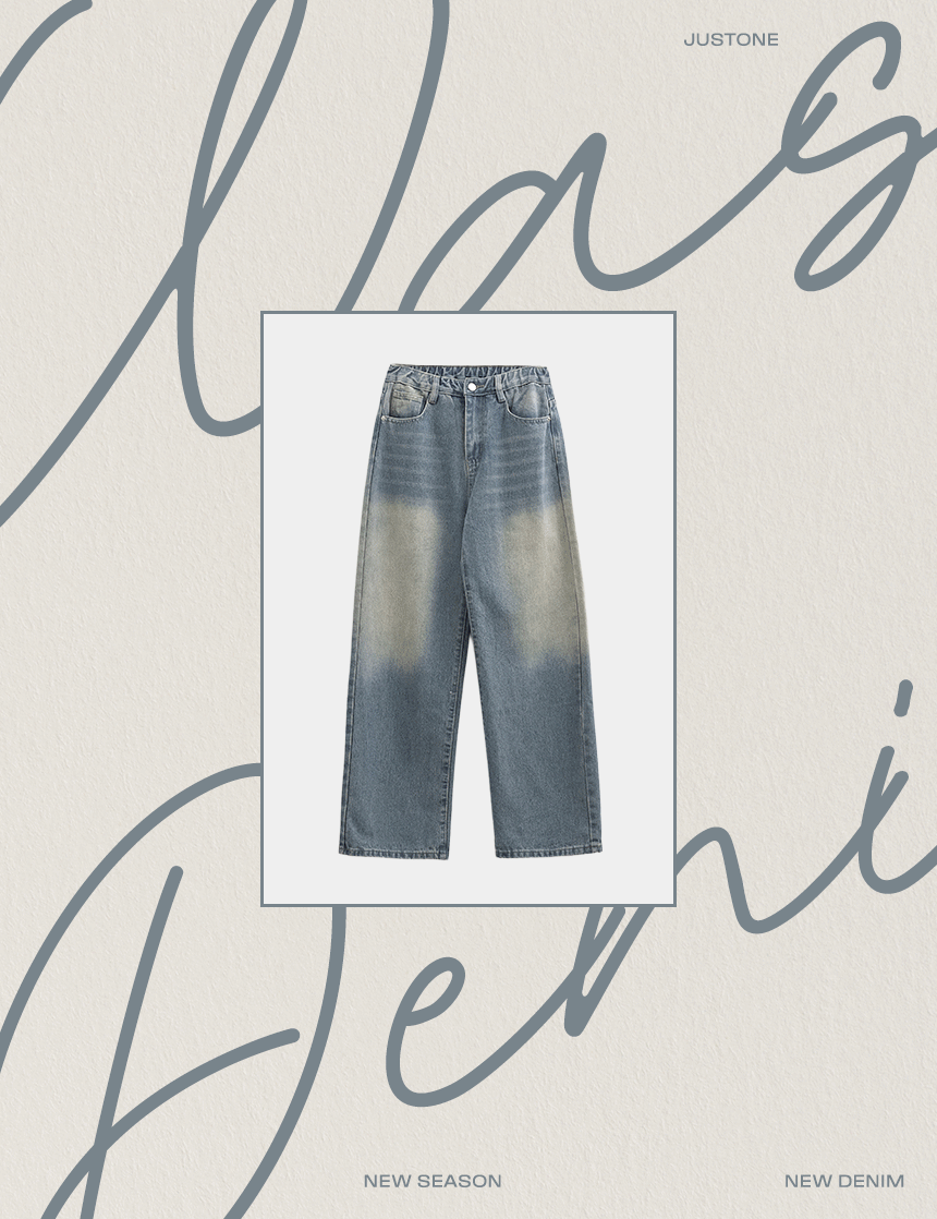 These denim jeans are crafted from sturdy, non-stretch fabric that holds a clean, wide silhouette without sagging. The sophisticated vintage wash adds depth and character, enhancing their style and appeal over time.