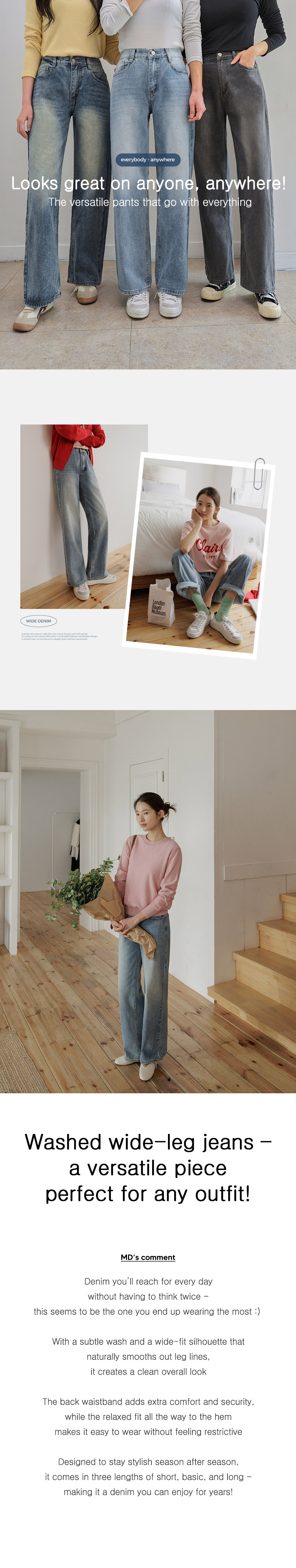Versatile Washed Wide Jeans (Short/ Basic/Long)