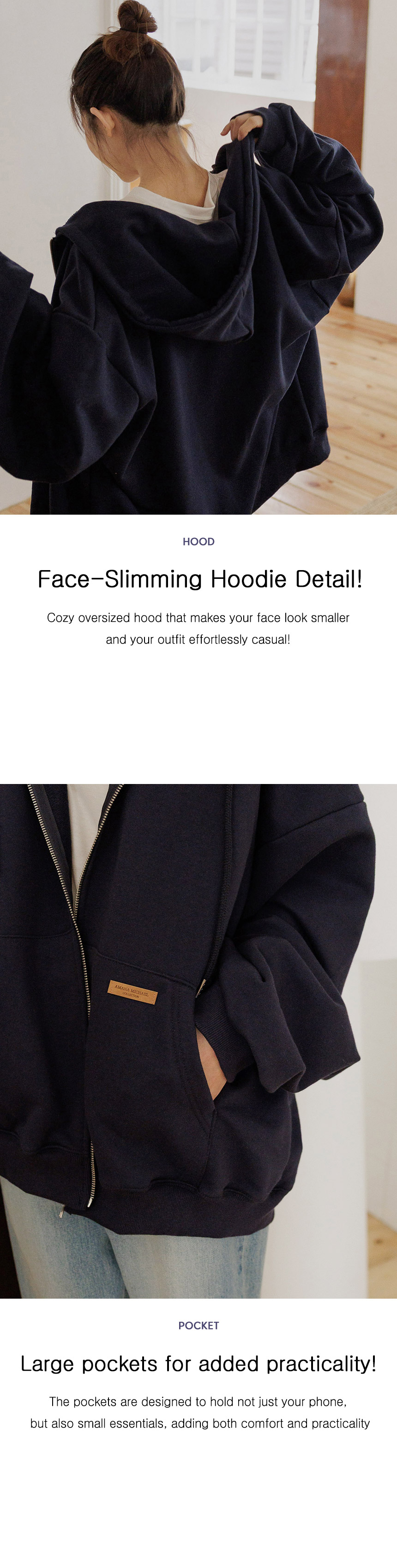 Leather Labels Boxy Fit Hoodies Zip Up