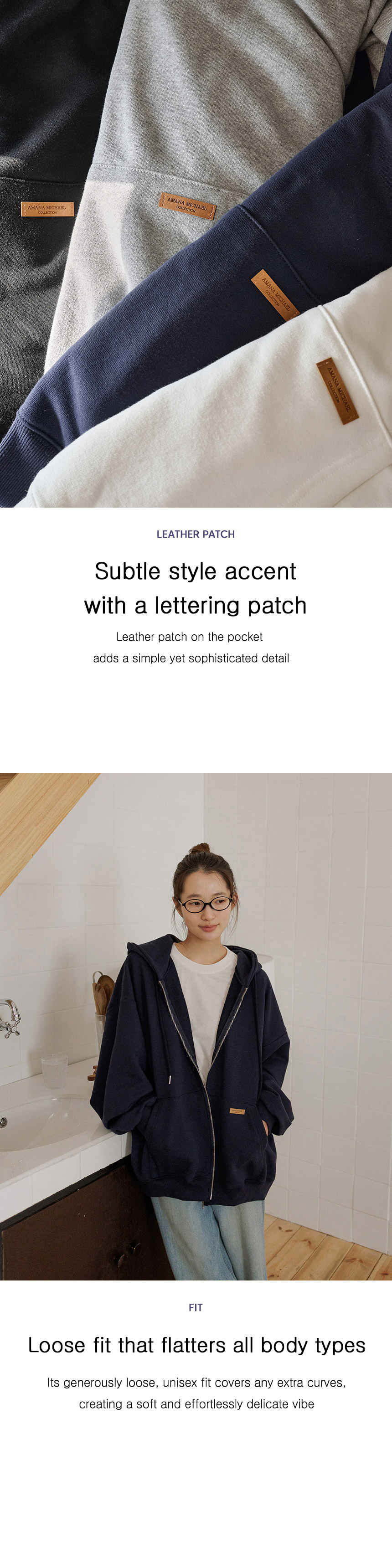 This is a loose-fit hoodie that anyone can wear. The neat design and leather patch detail on the pockets add a casual touch.