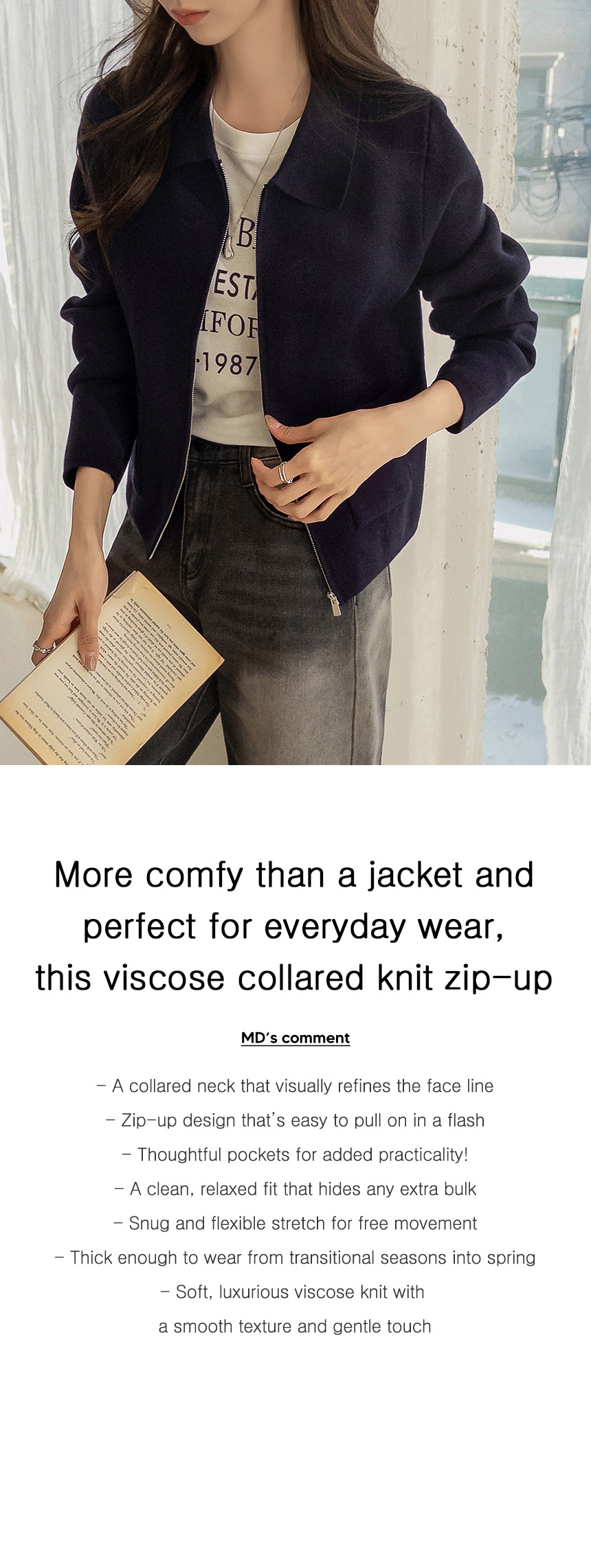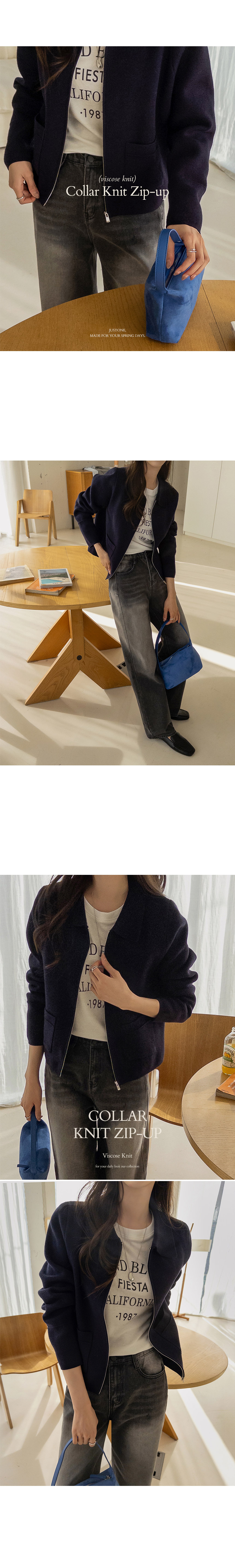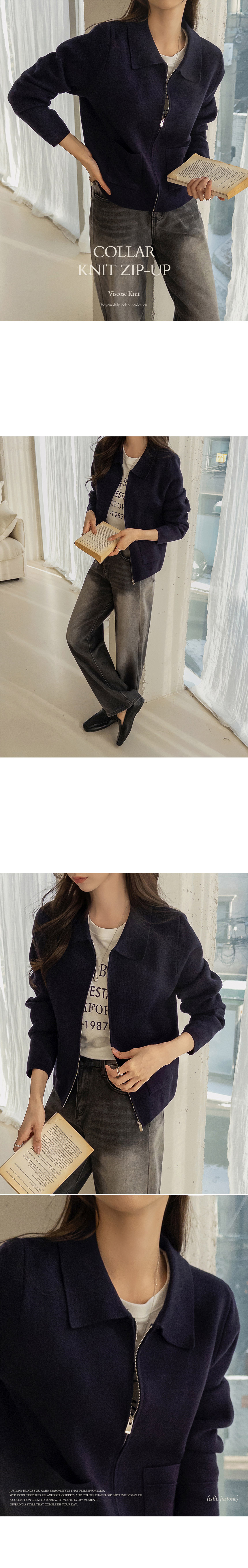 London Viscose Collar Knit Zip-Up
