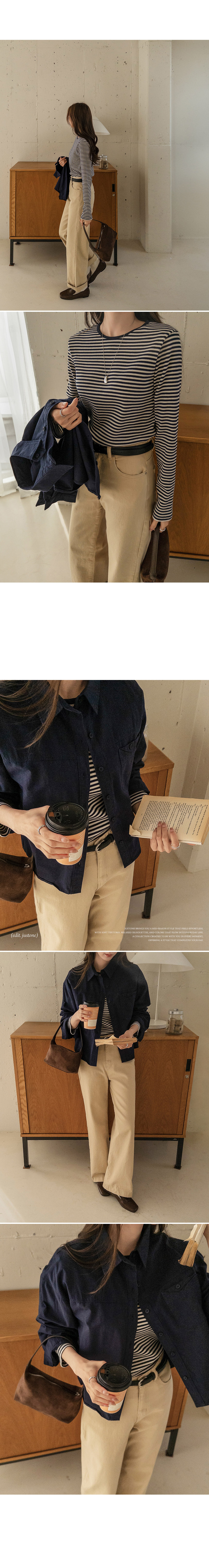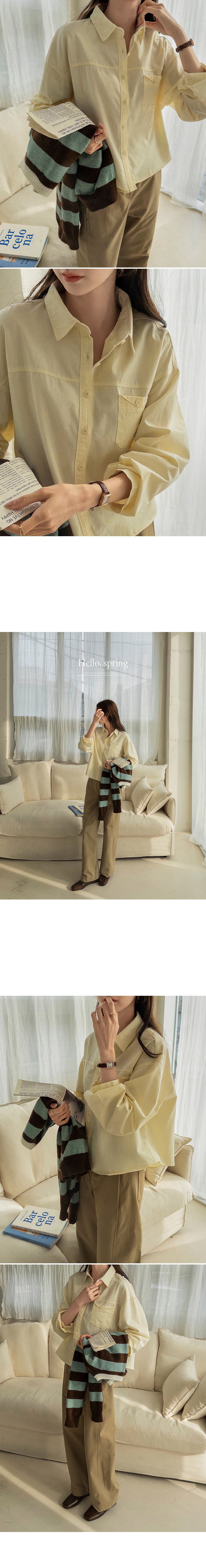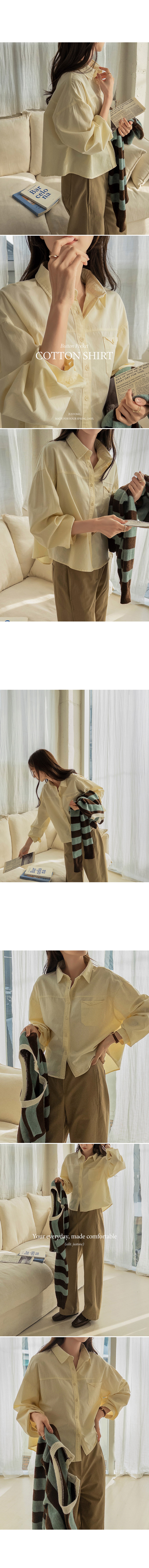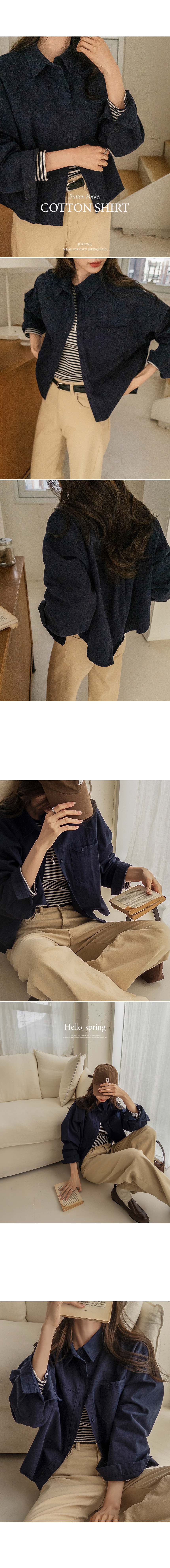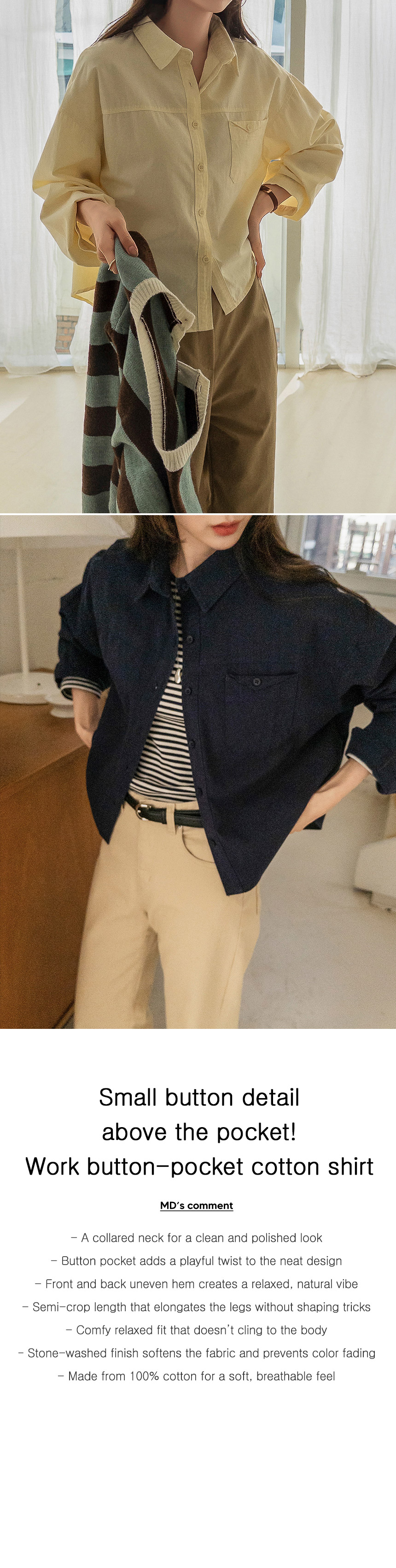 This shirt features a small button above the pocket as a subtle focal point. Its moderate semi-crop length creates a breezy, relaxed fit without showing any skin, and the lightweight cotton keeps you cool and comfortable all day.