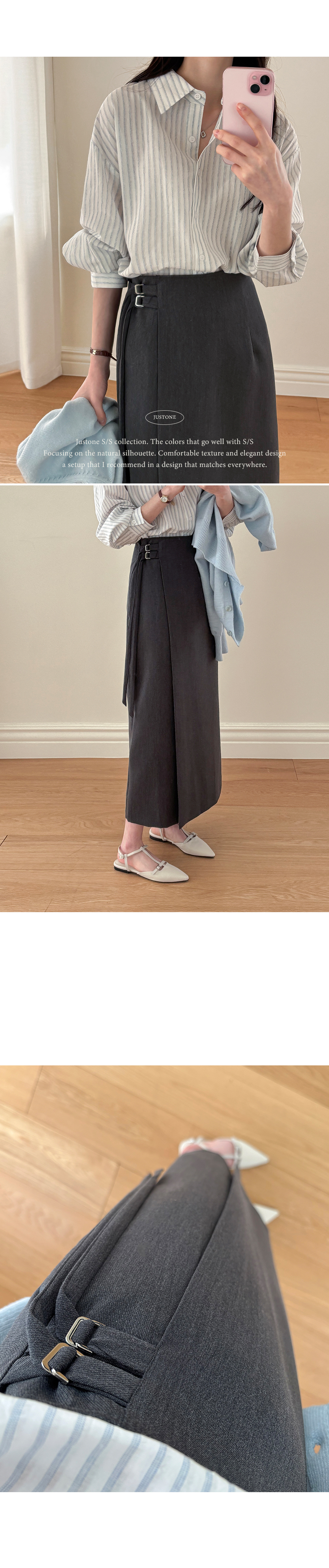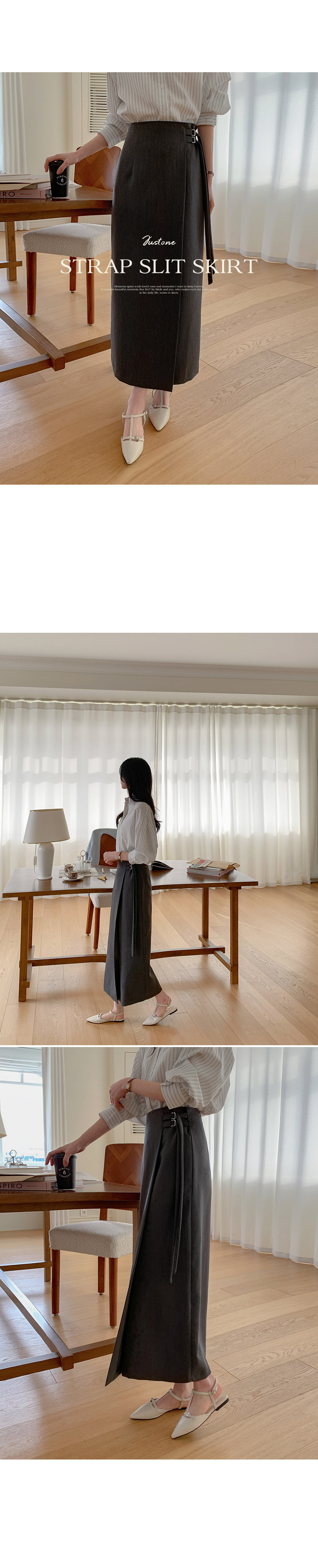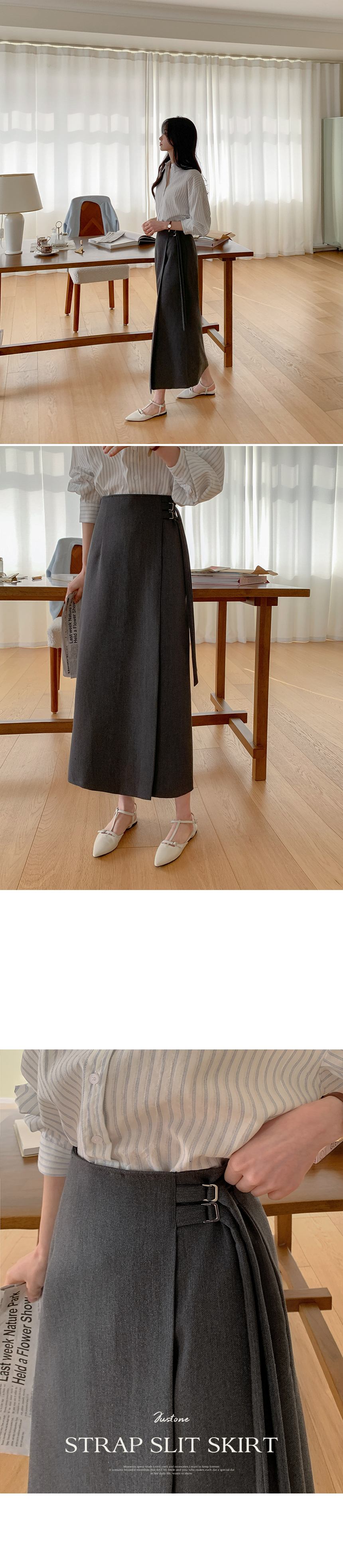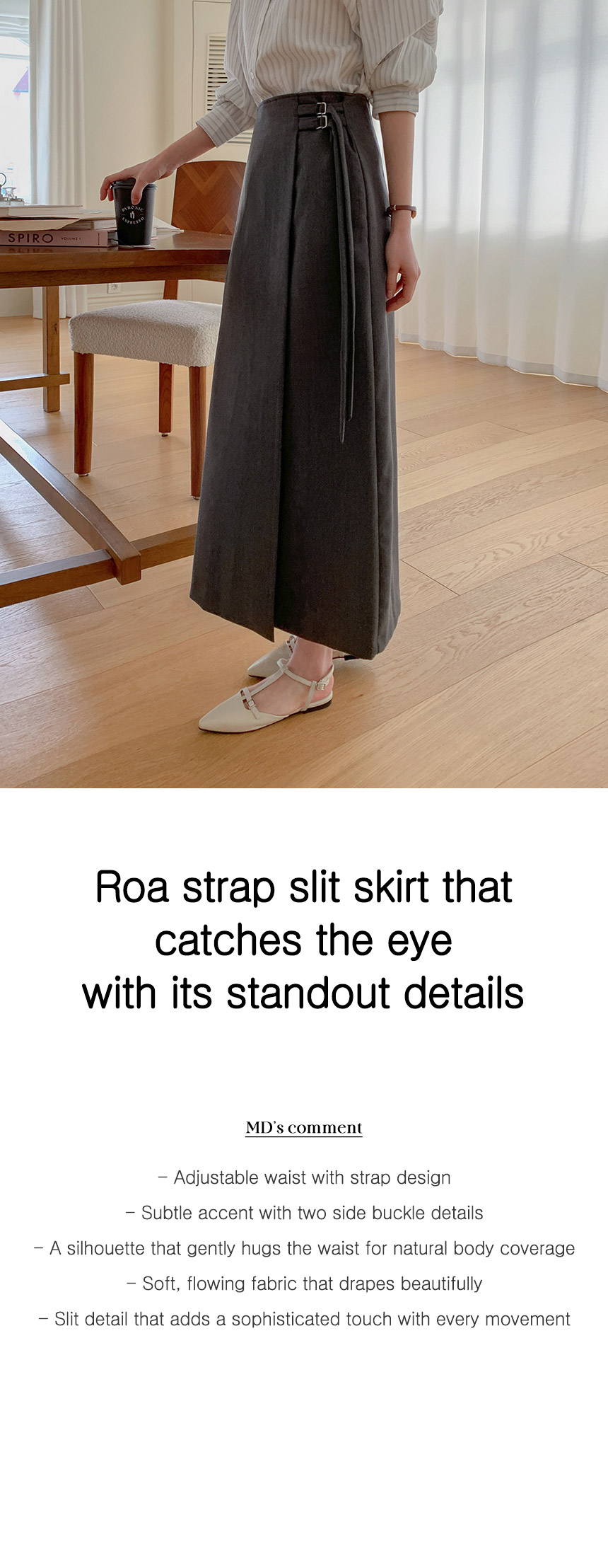 This skirt features a chic strap detail and a maxi length that flatters all body types. Pair it with a simple top for an effortlessly stylish look.