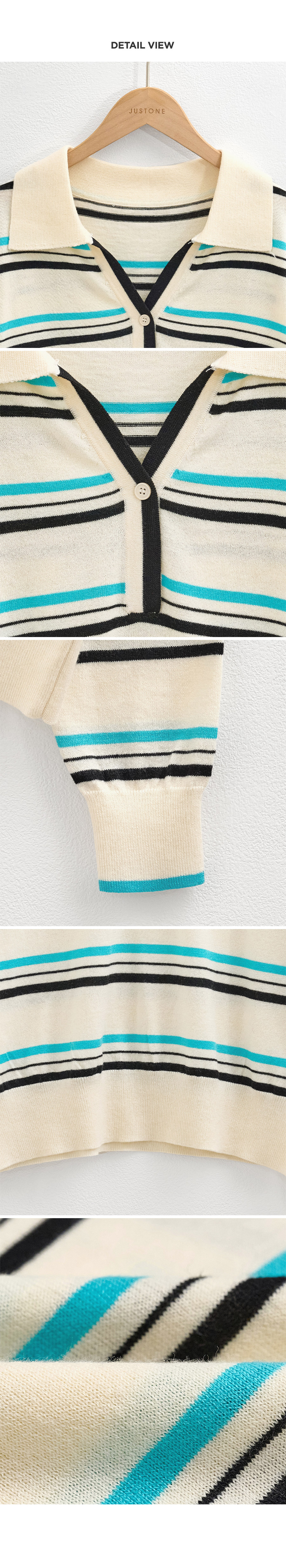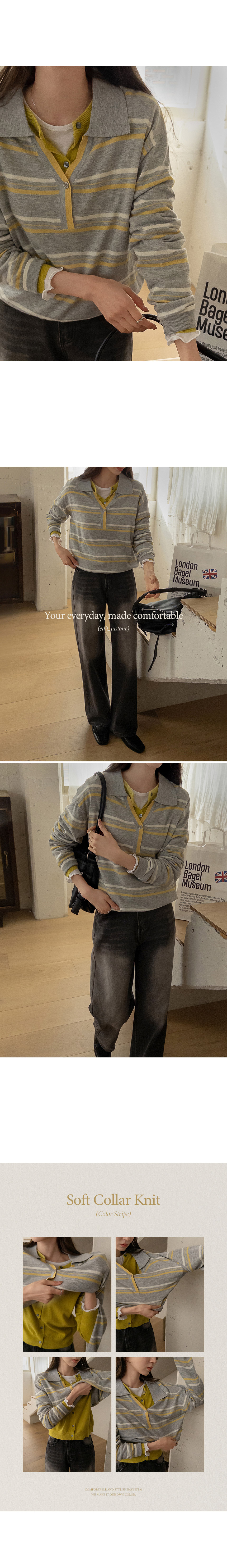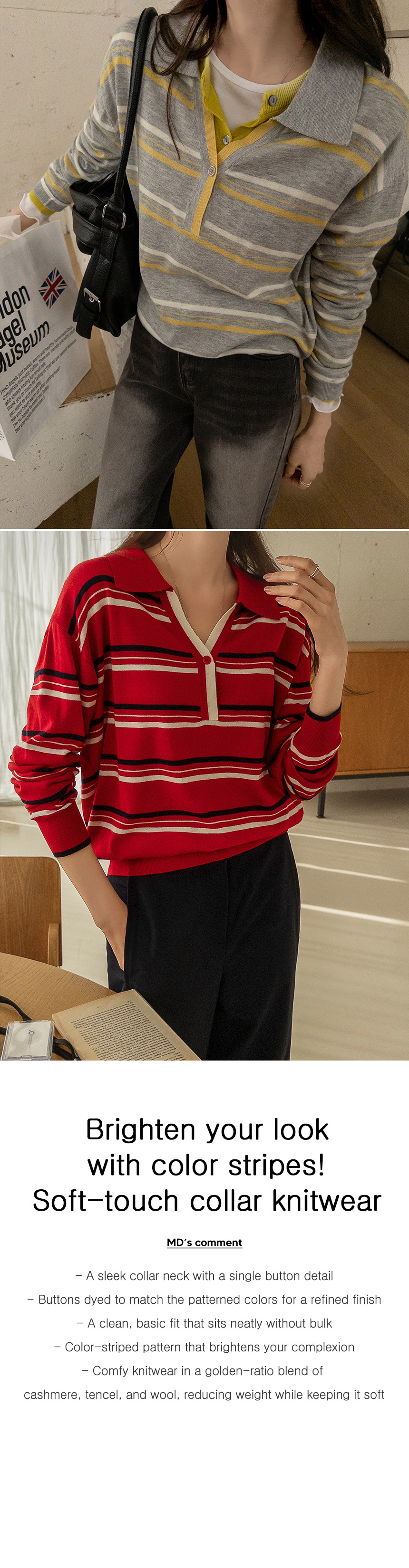 This basic-fit knitwear offers a sleek look without feeling bulky. The color-striped pattern brightens your complexion, and the lightweight, soft material ensures all-day comfort.