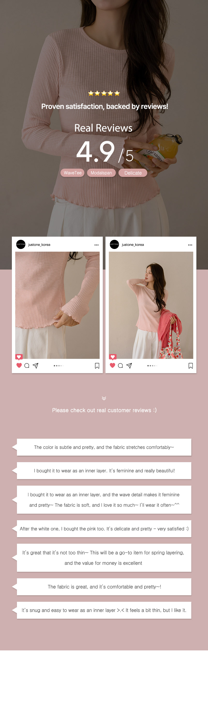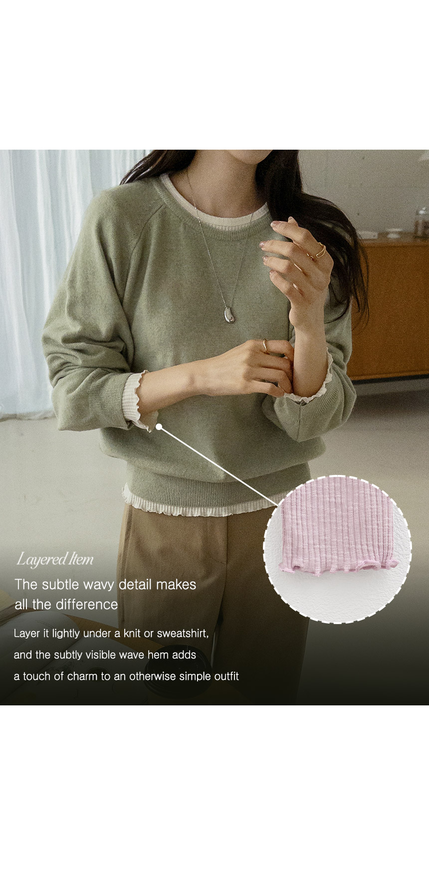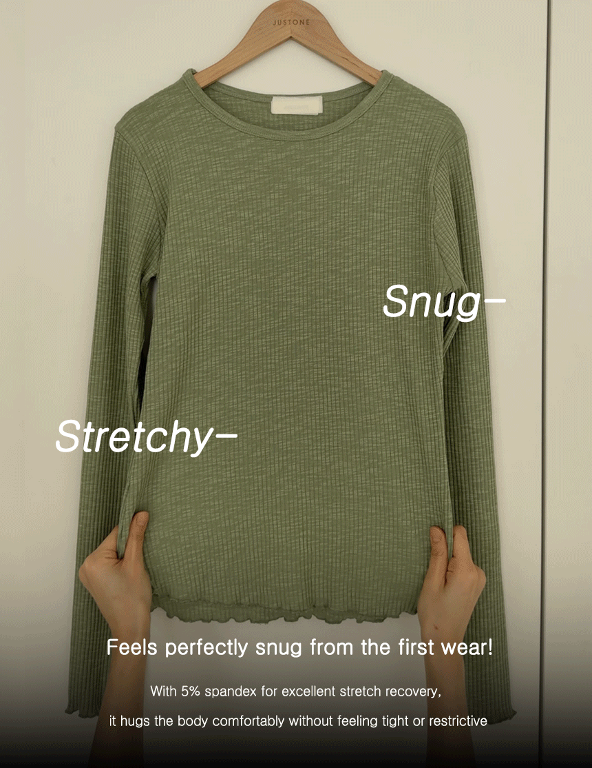 Subtly radiant, this knit-touch modal spandex wave tee is now available in a refreshing yellow-green! ♥ The ribbed fabric flatters your figure, while the wavy edges add a playful touch - perfect for layering.