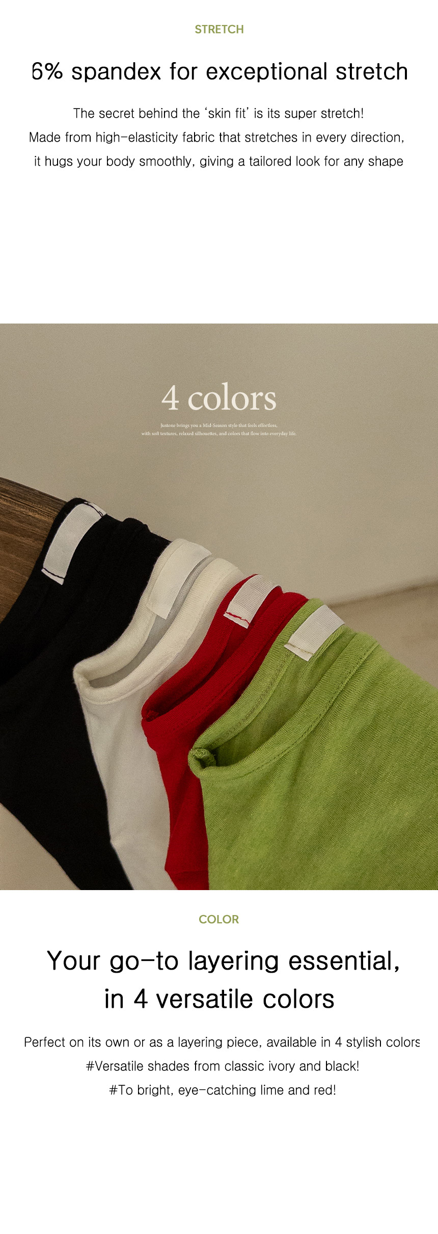It’s thin and lightweight, so it’s comfortable to wear without feeling stuffy, and it fits smoothly against the skin. Its slim fit works perfectly with a variety of outfits, while the soft texture and stretchy spandex make it a comfortable T-shirt to wear all day.