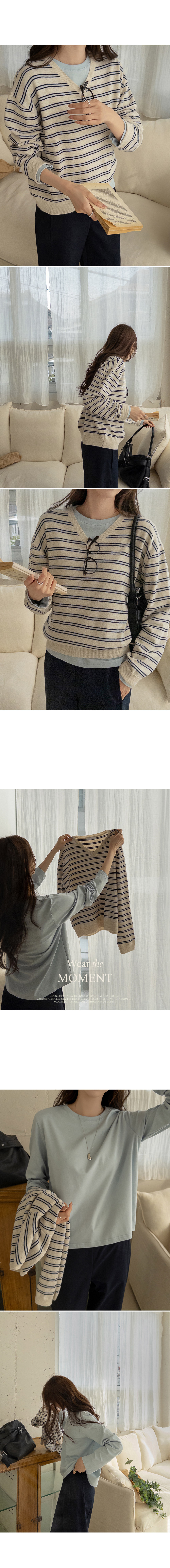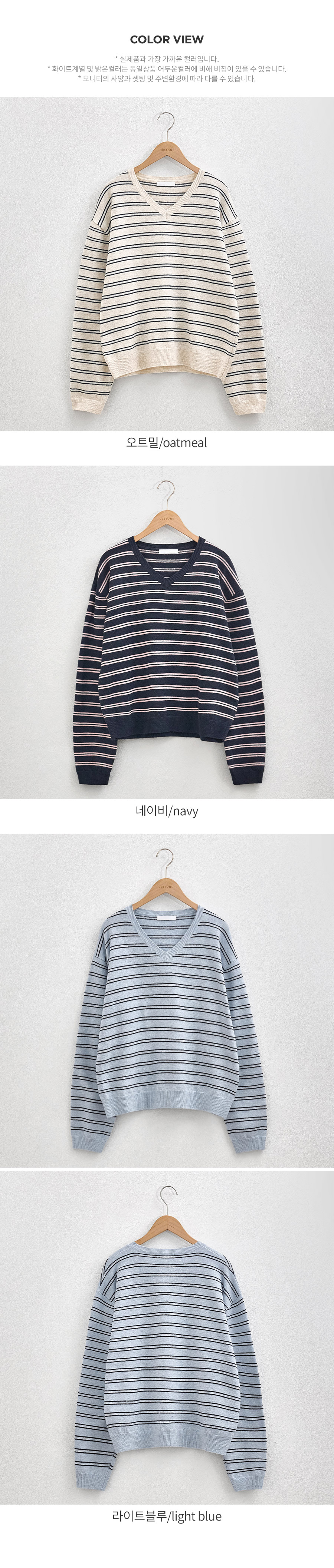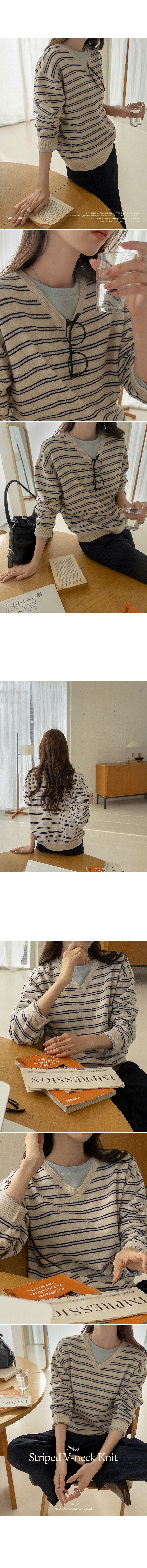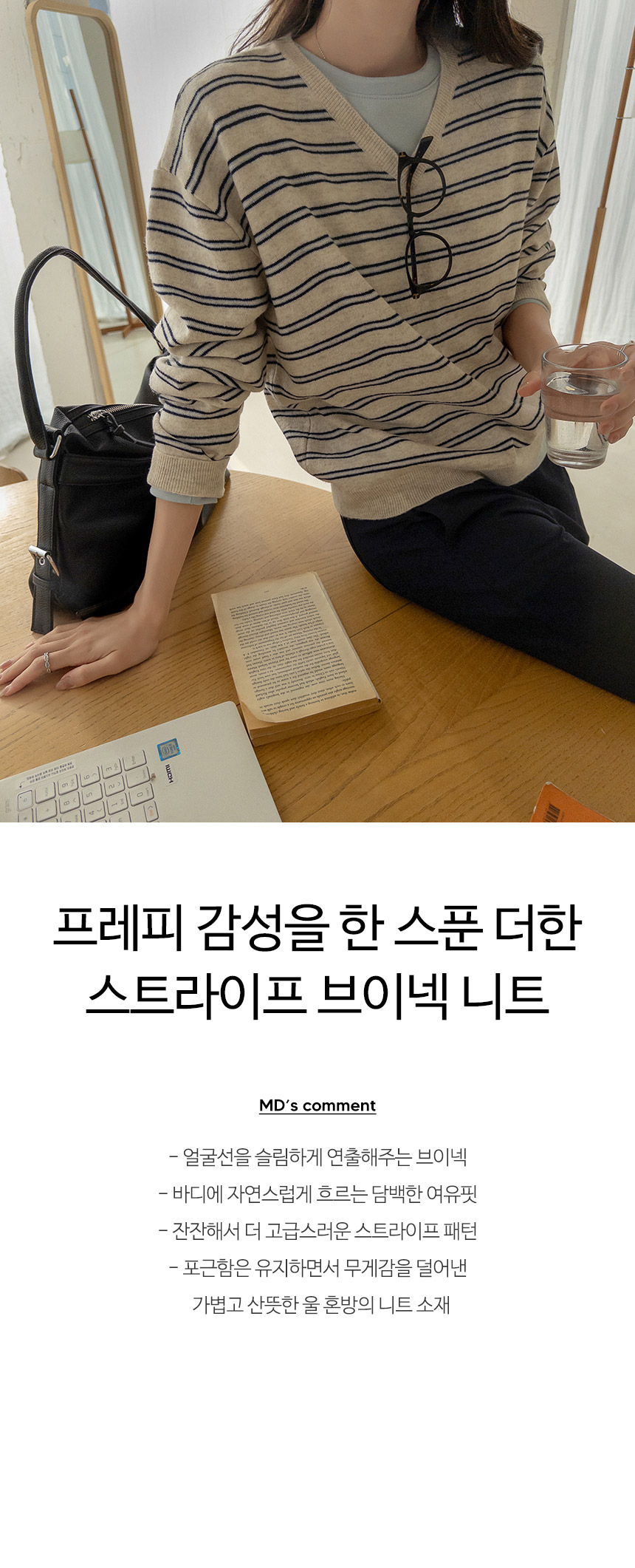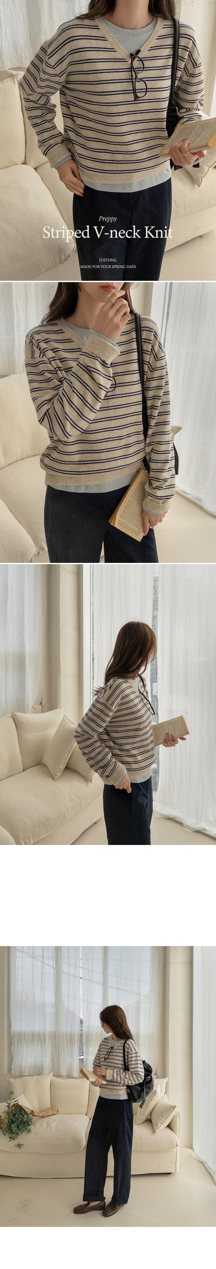 This knit features a subtle yet luxurious stripe pattern that evokes a preppy vibe! The V-neckline makes your face look slimmer, and the loose fit makes it neat and simple to wear.