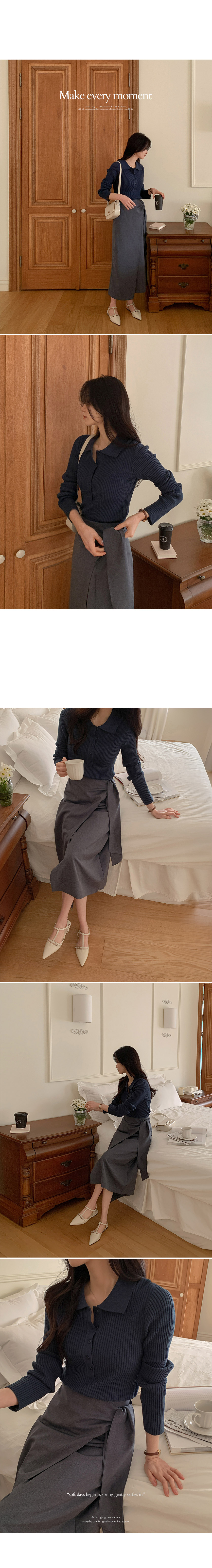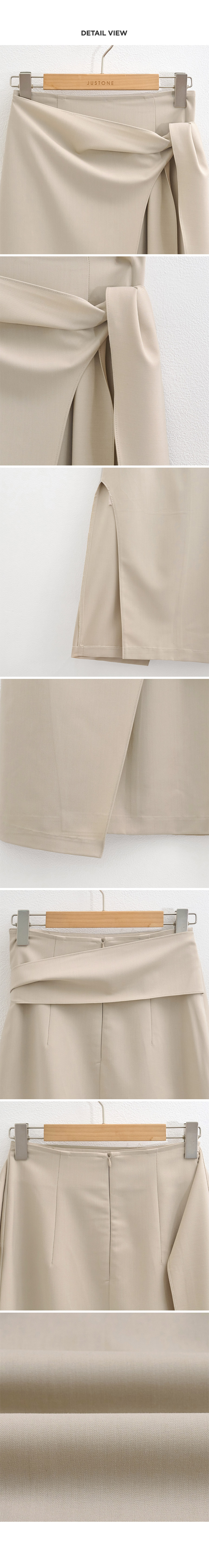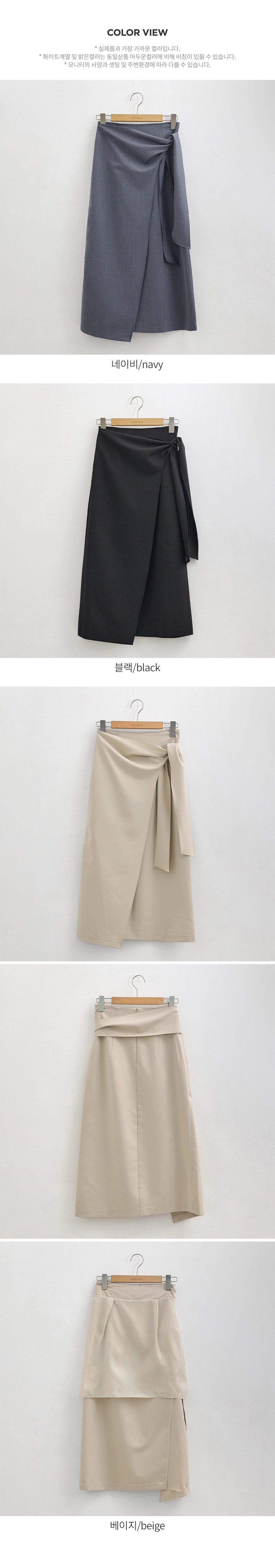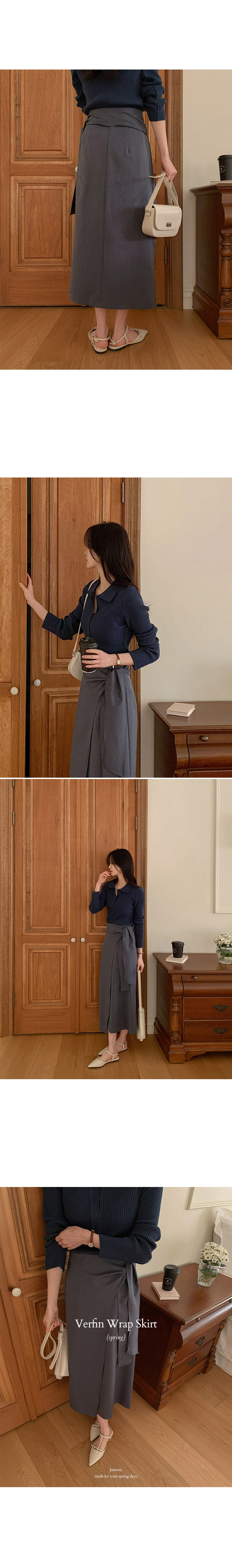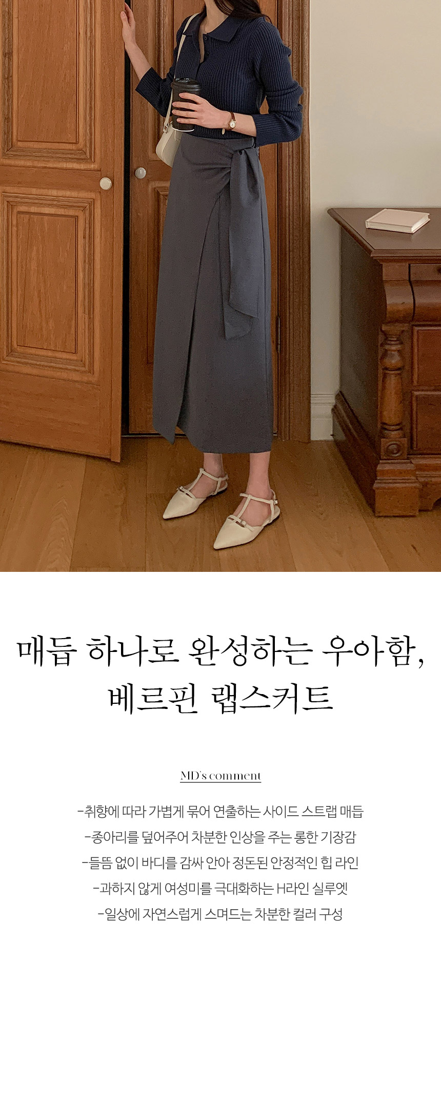This is a wrap skirt that exudes a feminine charm that isn't excessive. It has side strap knots so you can style it according to your taste, and the length that covers the calves creates a silhouette that gives a calm impression.