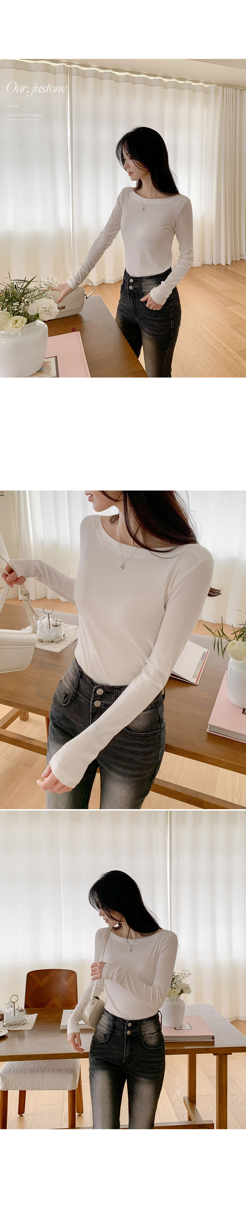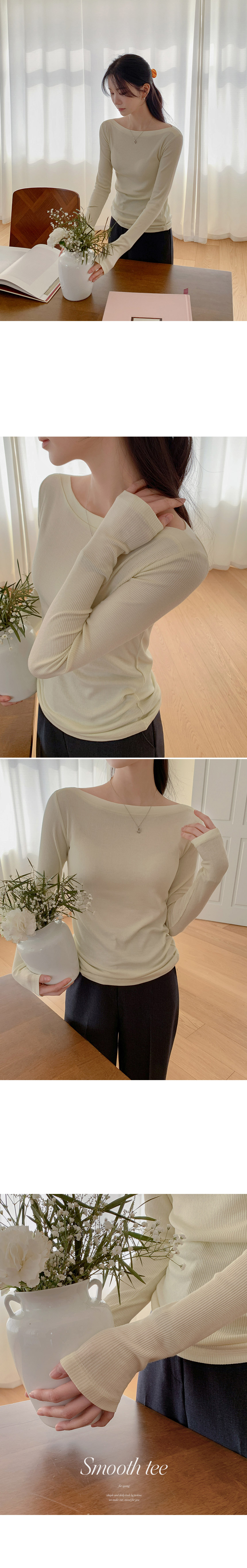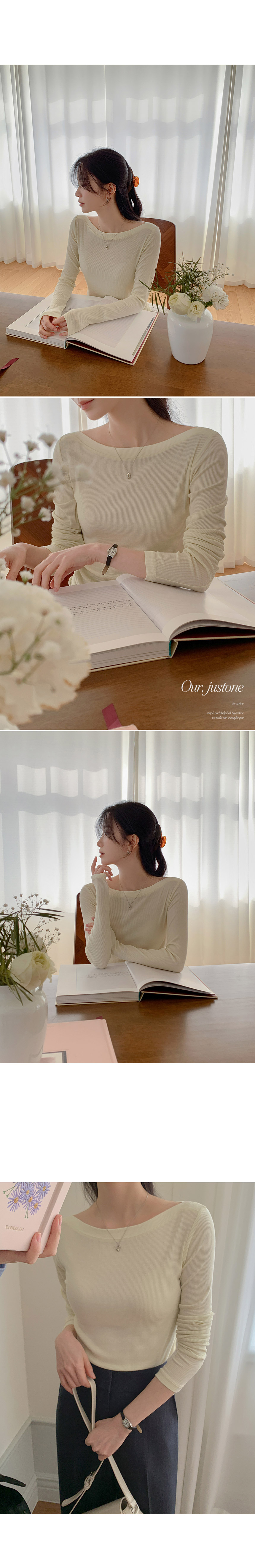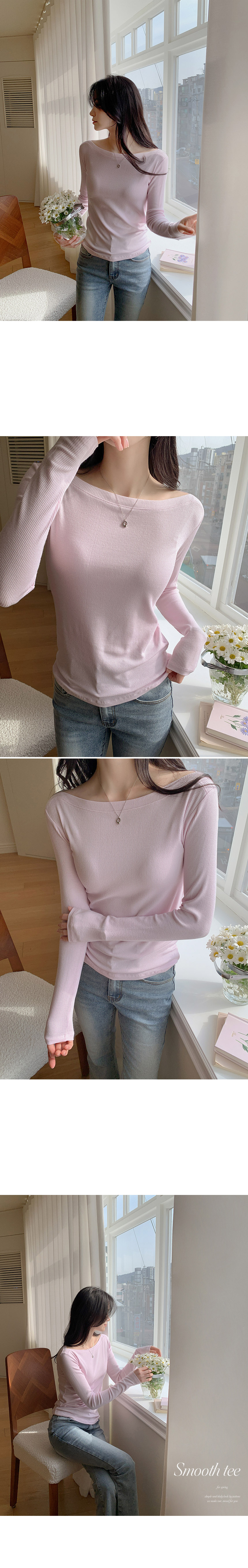 This is a T-shirt that adds a touch of femininity to a basic design. It is a great item to wear alone or as an inner layer, with a feminine boat neck design and stretchy material that hugs the body snugly.